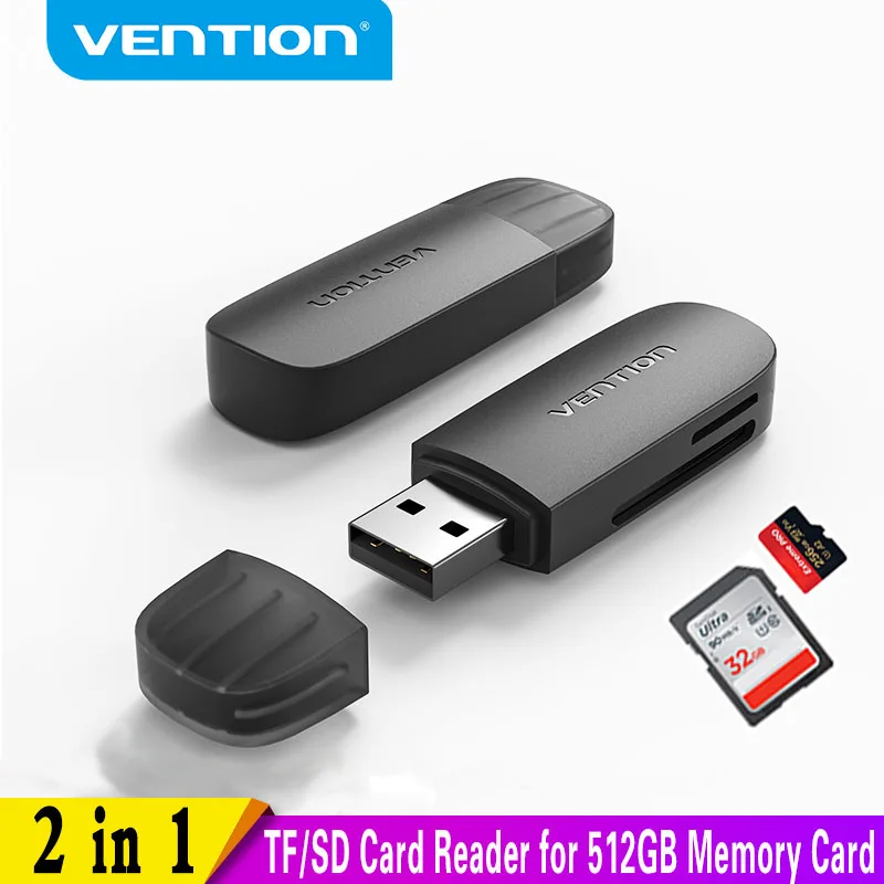 Comprar Vention-Lector de tarjetas de memoria 2 en 1 para PC, adaptador de tarjeta TF a Micro SD, USB 3,0, 2,0, Accesorios para ordenador portátil