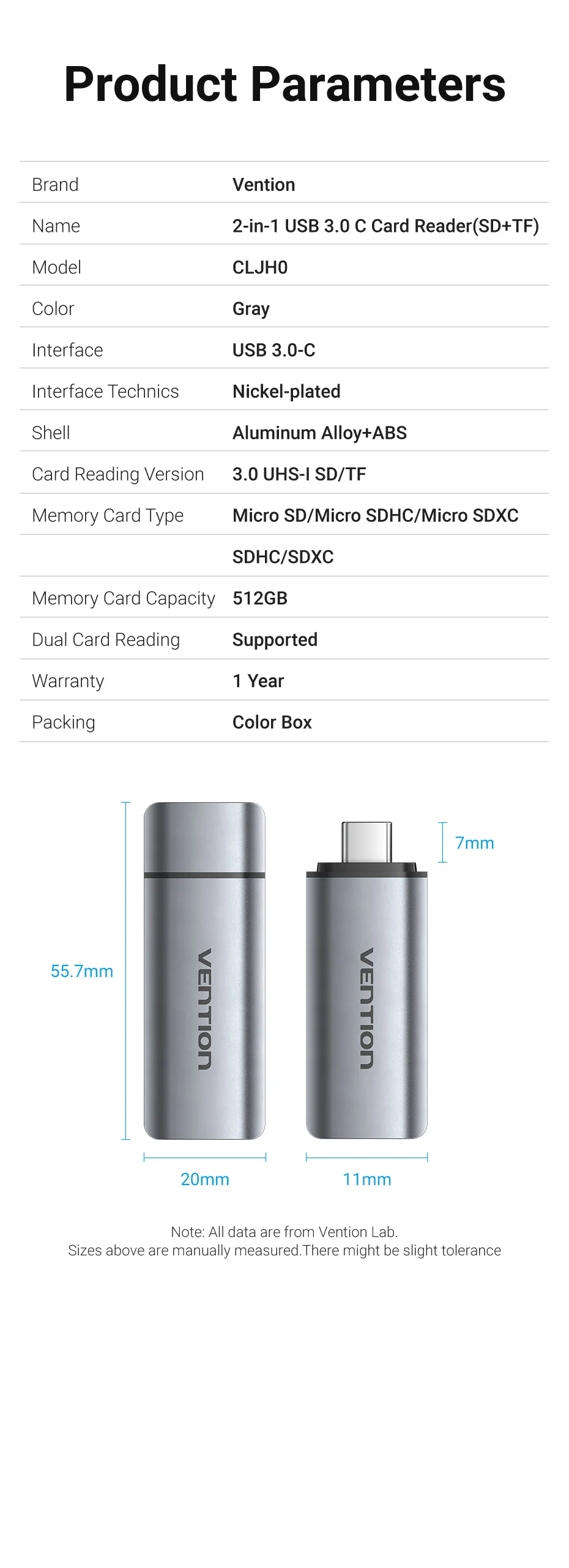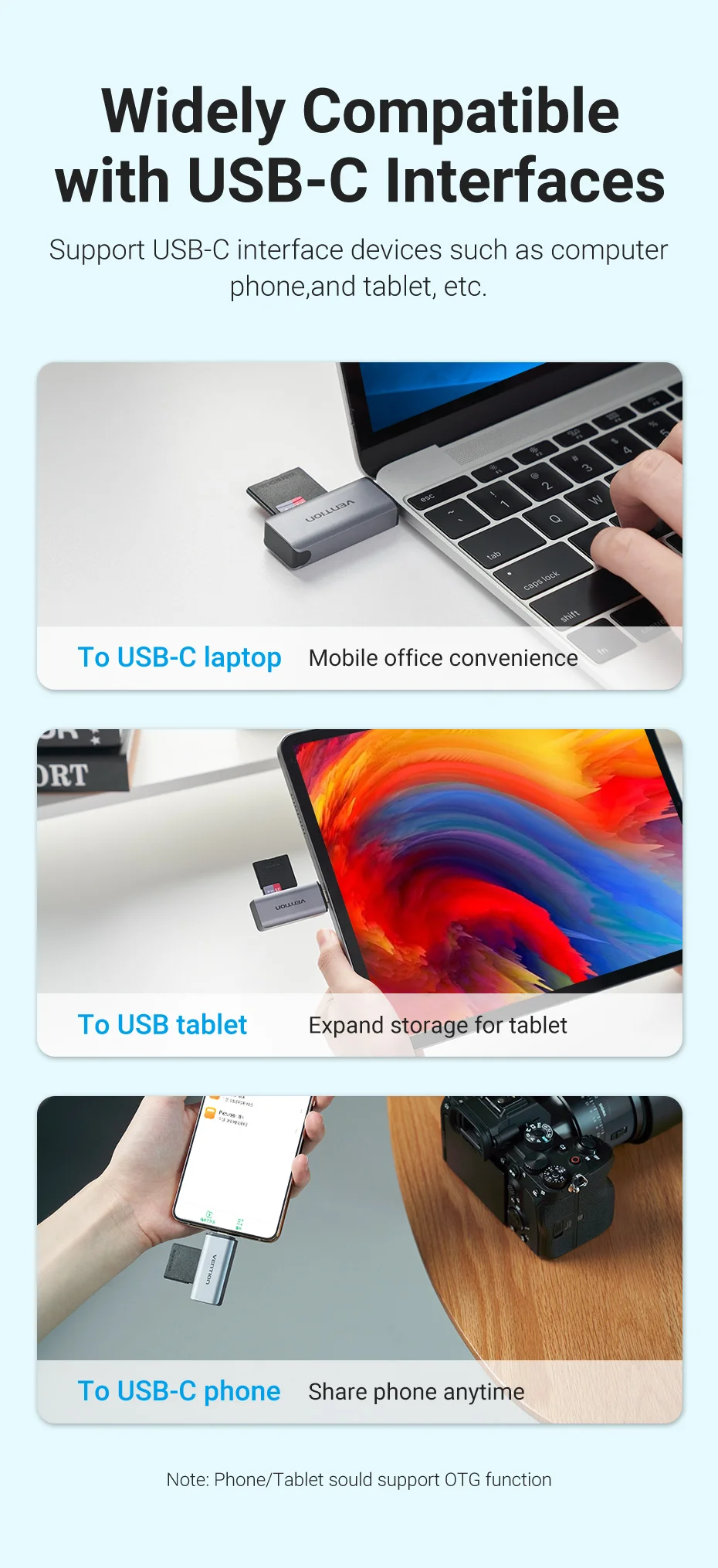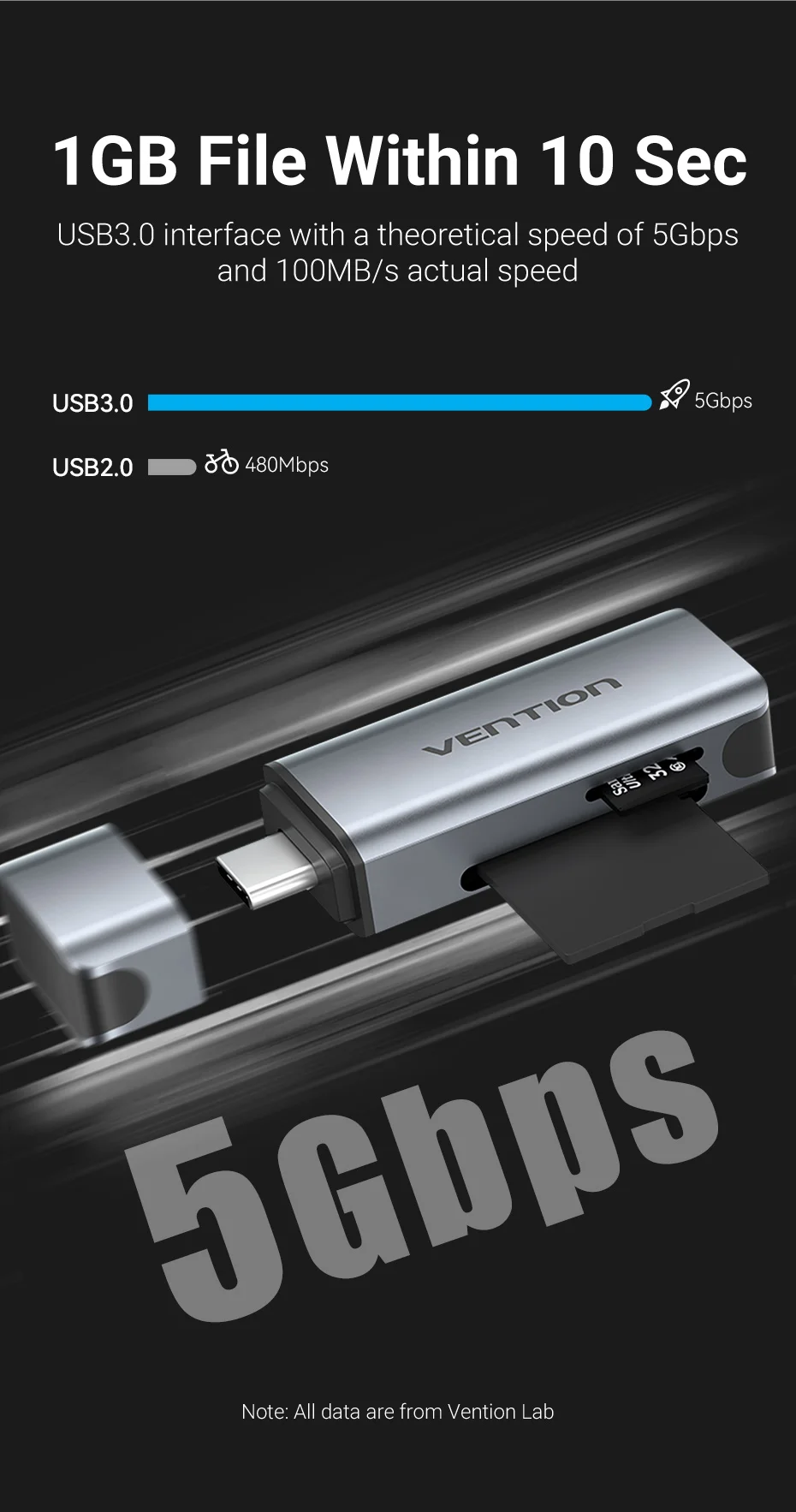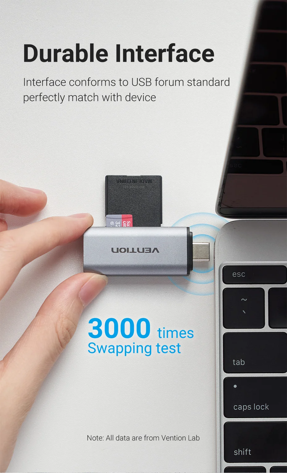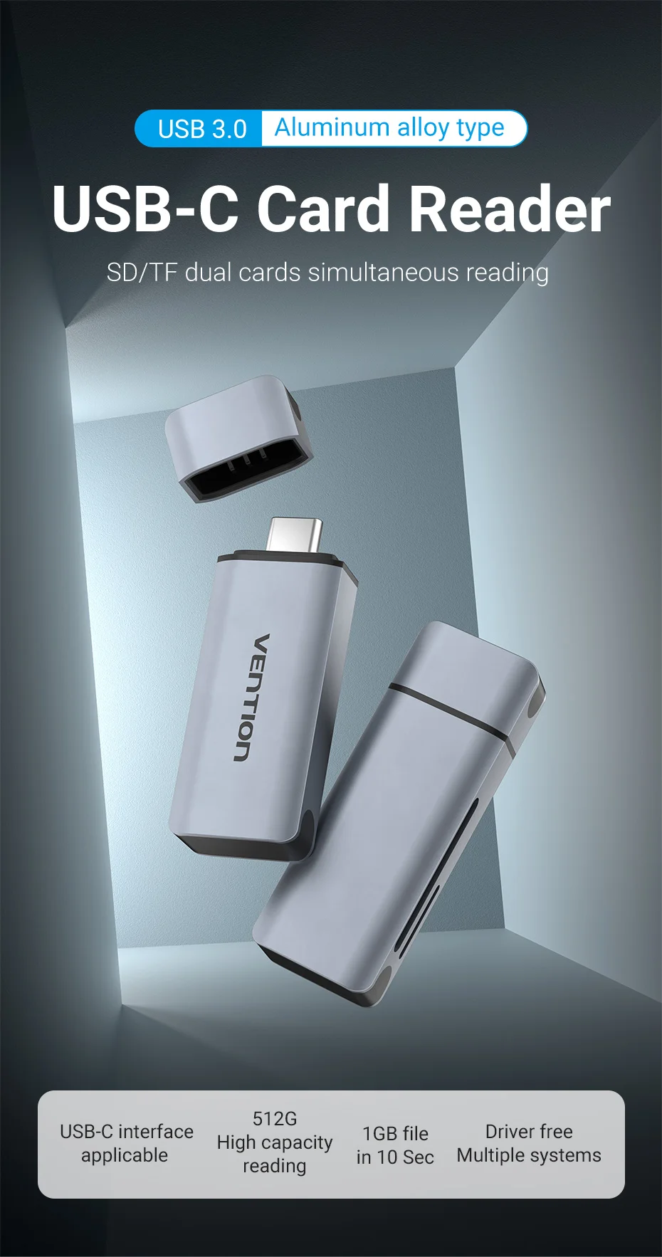 Comprar Vention-Lector de tarjetas Micro SD USB3.0 C, adaptador de tarjeta de memoria inteligente para ordenador portátil