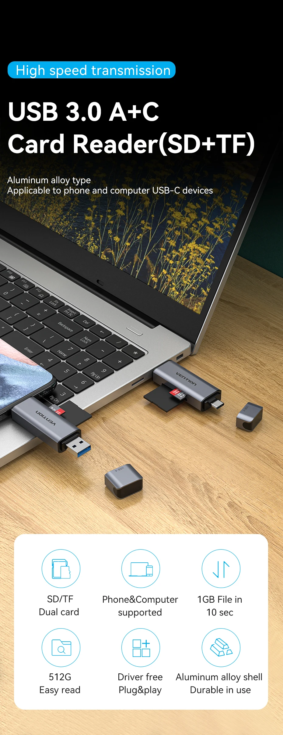 Comprar Vention-lector de tarjetas SD USB tipo C a Micro SD, adaptador de tarjeta TF para ordenador portátil, accesorios para teléfono, memoria inteligente, adaptador de tarjeta SD 3,0