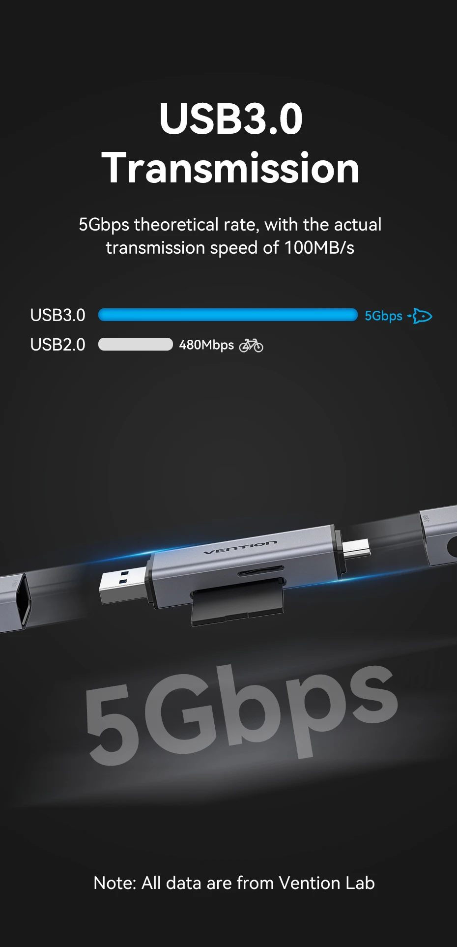 -Lector de tarjetas de memoria USB compatible con tarjeta SD/Micro SD de hasta 512G y permite una transferencia de datos súper rápida de hasta 5Gbps - 10 veces más rápido que USB 2,0 (480 Mbps), también retrocompatible con USB 2,0, 1,1 y 1,0.