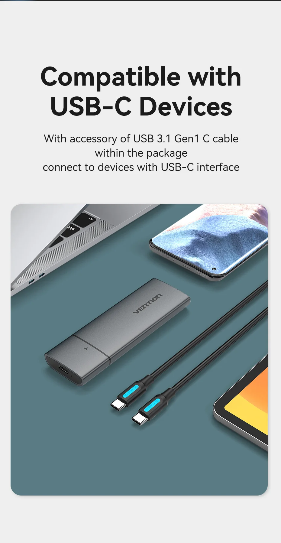 With accessory of USB 3.1 Gen 1 C cable within the package connect to devices with USB -C interface