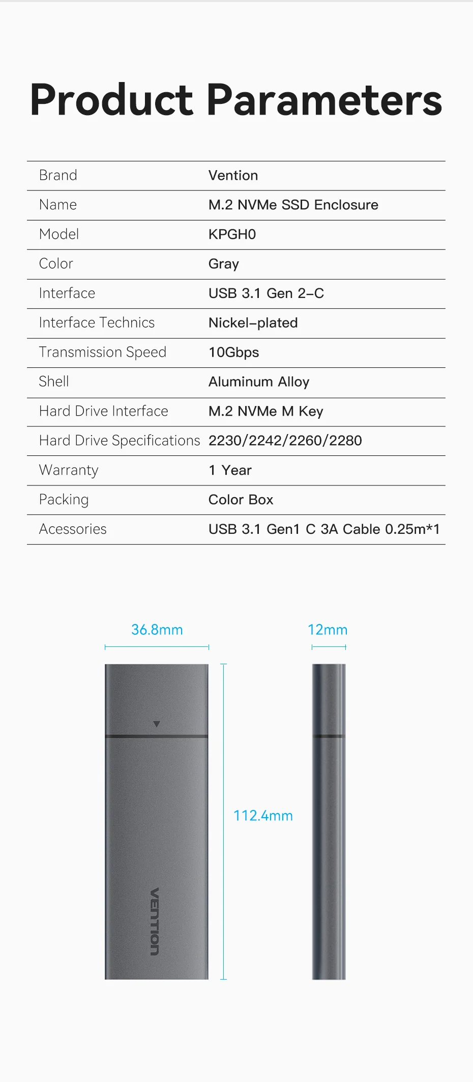 10Gbps Transmission rate M.2 NVMe SSD Enclosure