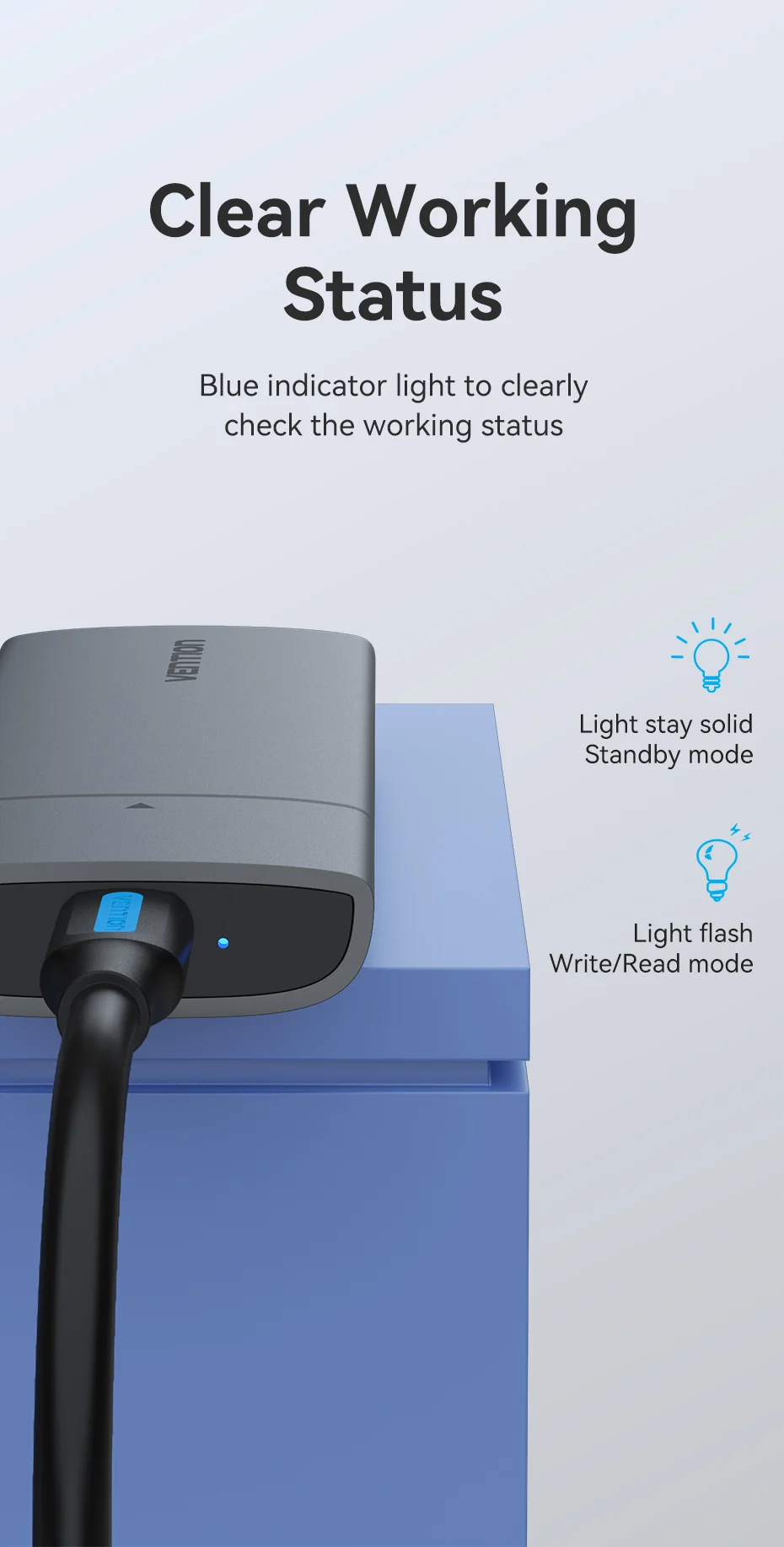 Blue indicator light clearly check the working status