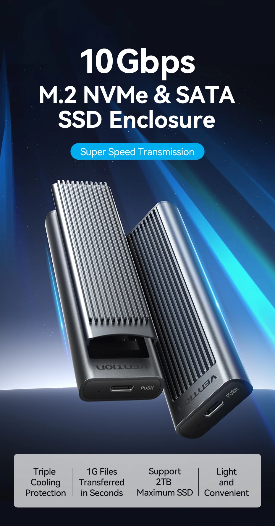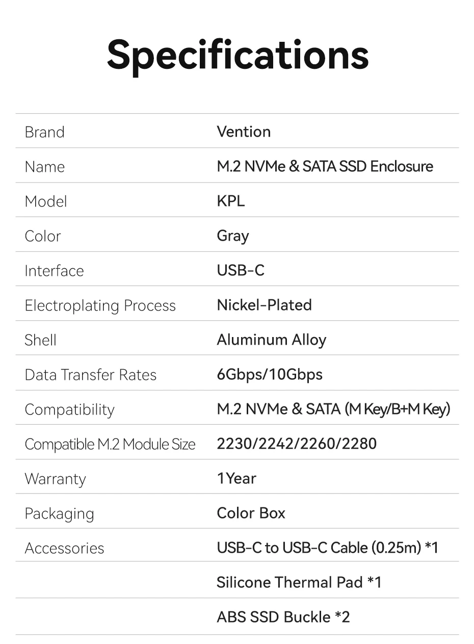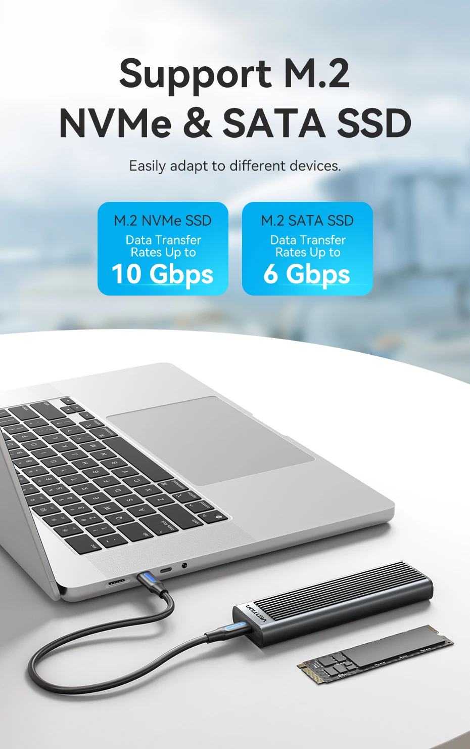 Comprar Vention M2 SSD Case M.2 NVMe SATA SSD Adaptador de carcasa 10Gbps USB 3.1 Gen2 USB C Caja externa compatible con teclas M y B&M
