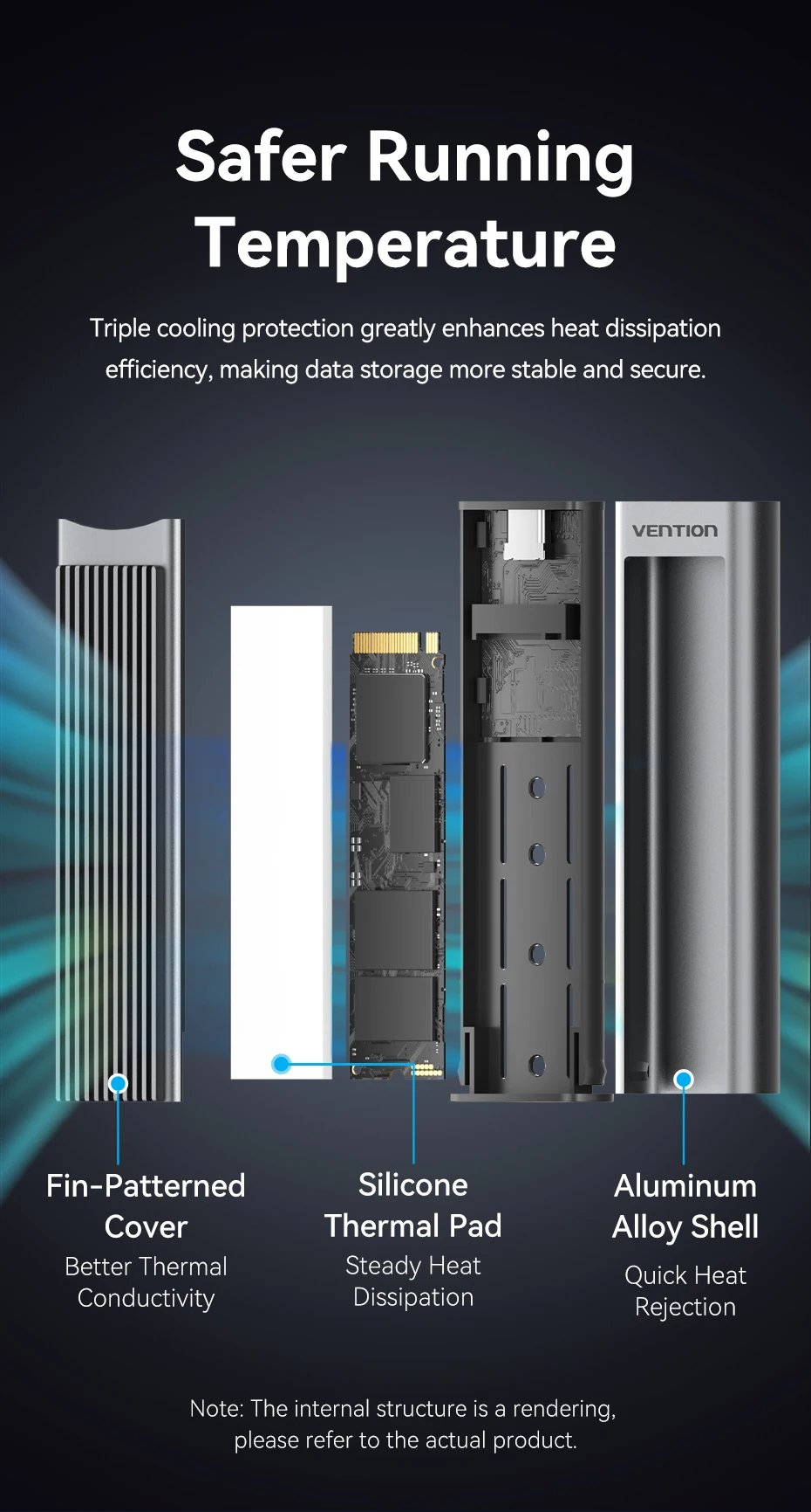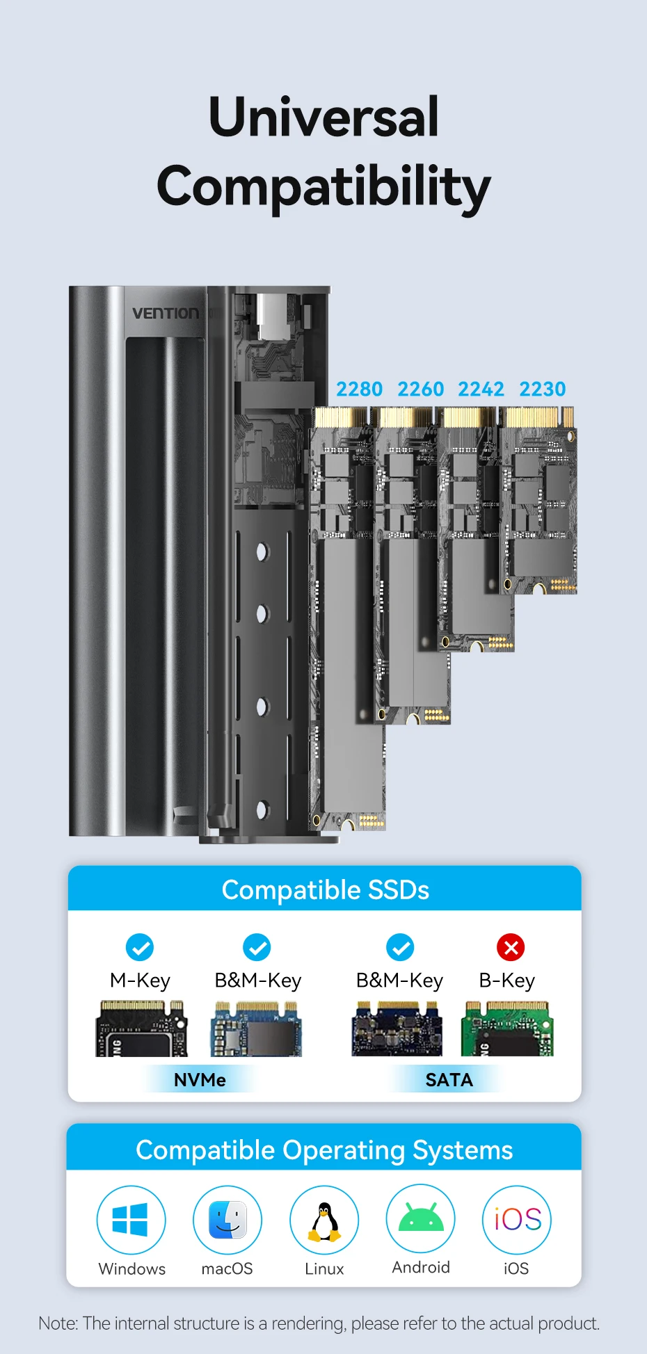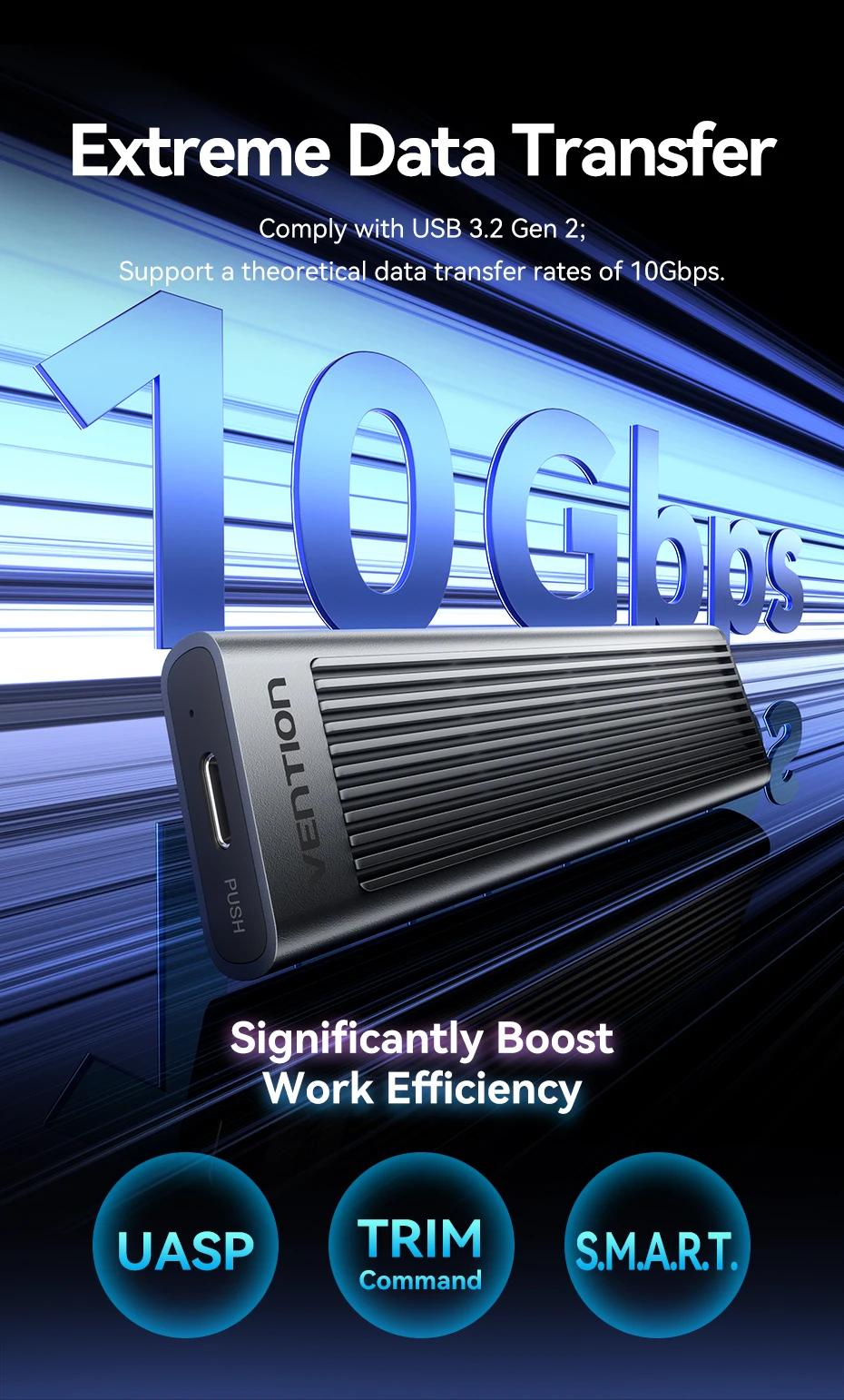 Comprar Vention M2 SSD Case M.2 NVMe SATA SSD Adaptador de carcasa 10Gbps USB 3.1 Gen2 USB C Caja externa compatible con teclas M y B&M