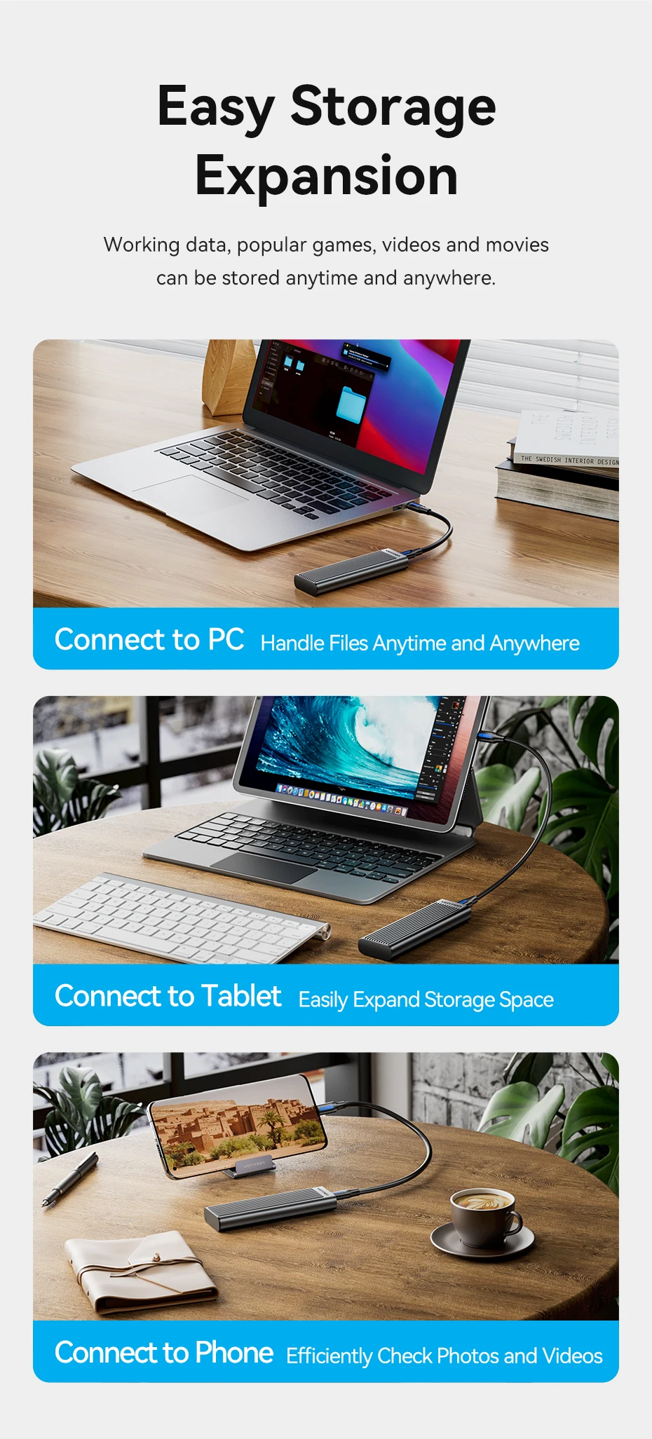 Los datos de trabajo, los juegos populares, los vídeos y las películas se pueden almacenar en cualquier momento y en cualquier lugar.