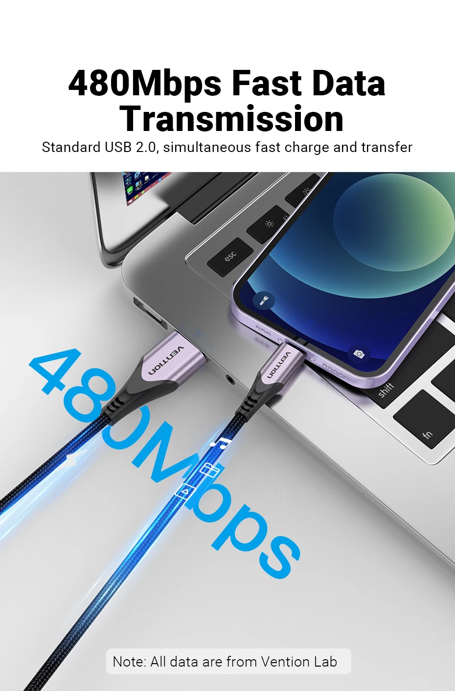 USB 2.0 estándar, carga y transferencia rápida simultánea