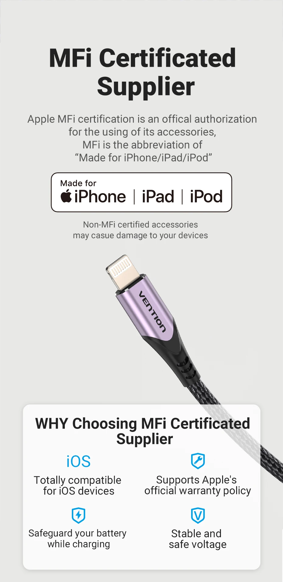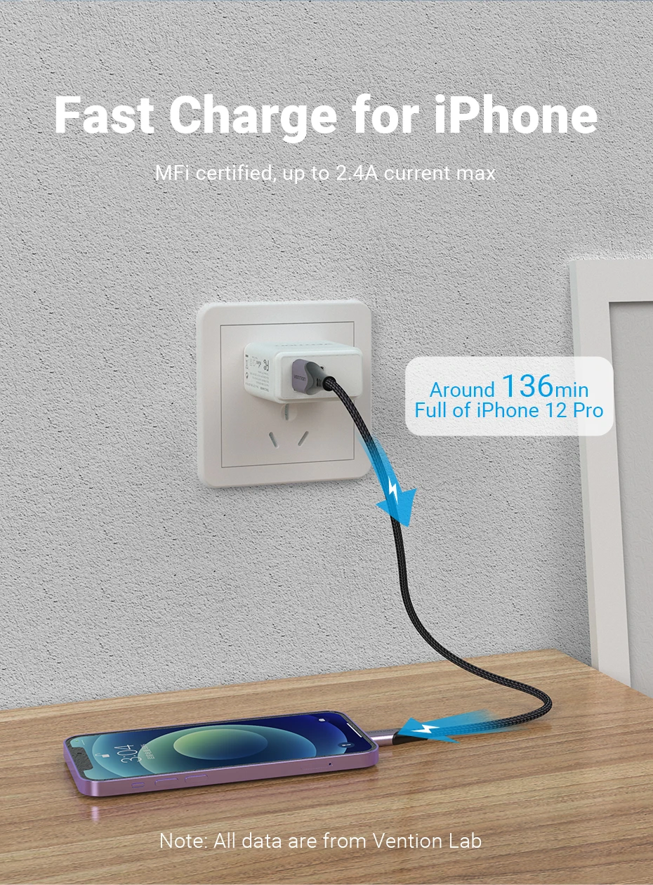 MFi:La certificación MFi y las estrictas pruebas de calidad garantizan que sus dispositivos se carguen de forma segura y a su mayor velocidad posible.