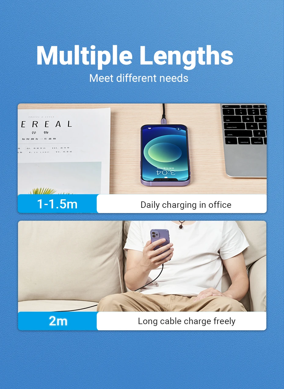 [Nylon trenzado]:El cable de carga flexible tiene una cubierta trenzada de nailon doble de alta calidad y un material central.La carcasa compacta de aleación de aluminio agrega más protección a los conectores Lightning y USB-A, permite más de 10000 doblarse y desenchufarse repetidamente.