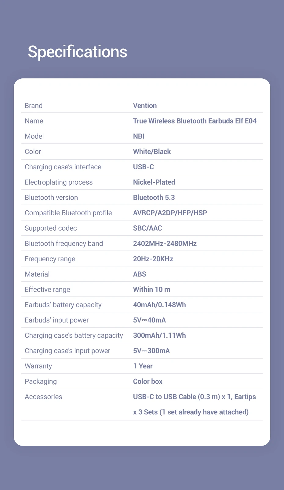 Nombre: Auriculares inalámbricos Vention Elf E04 verdaderos