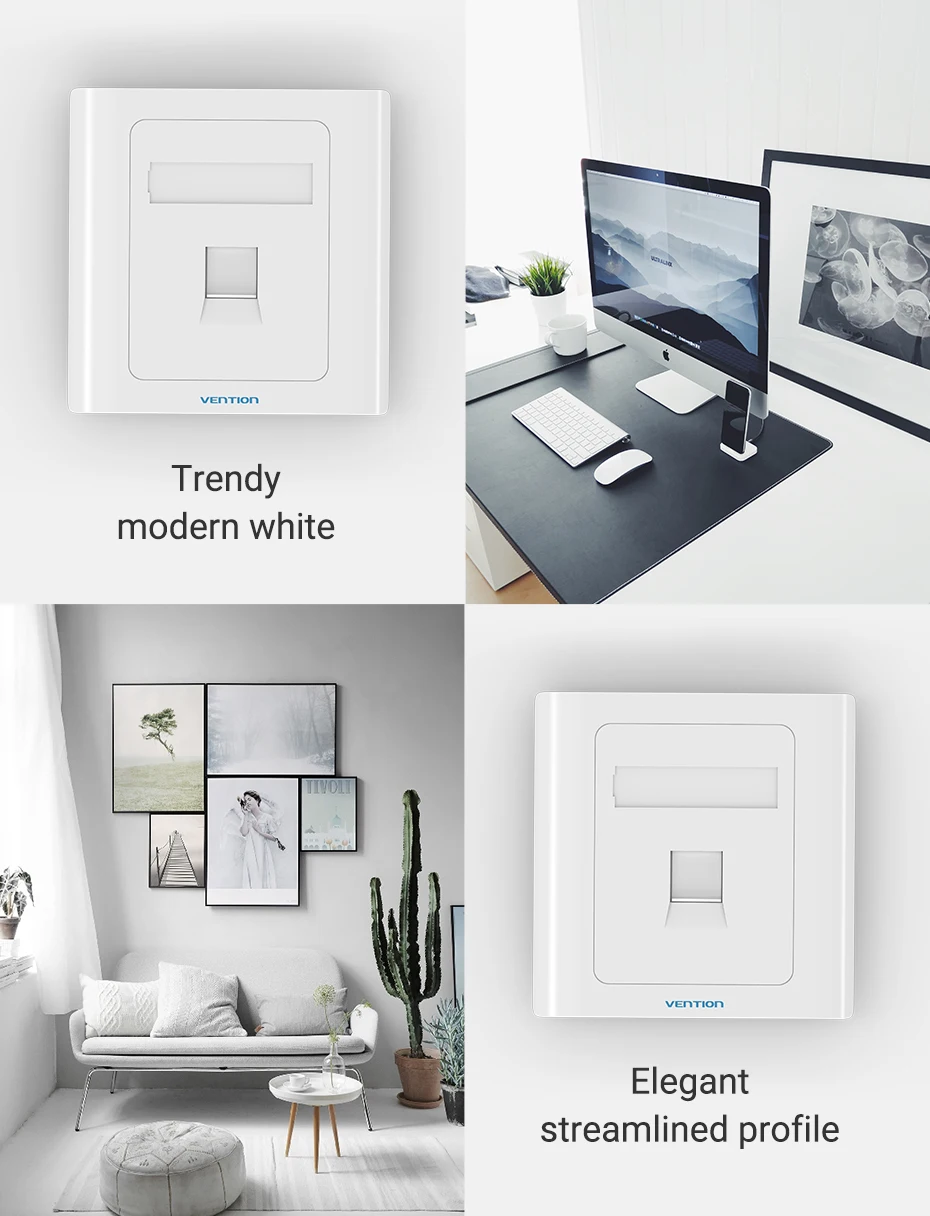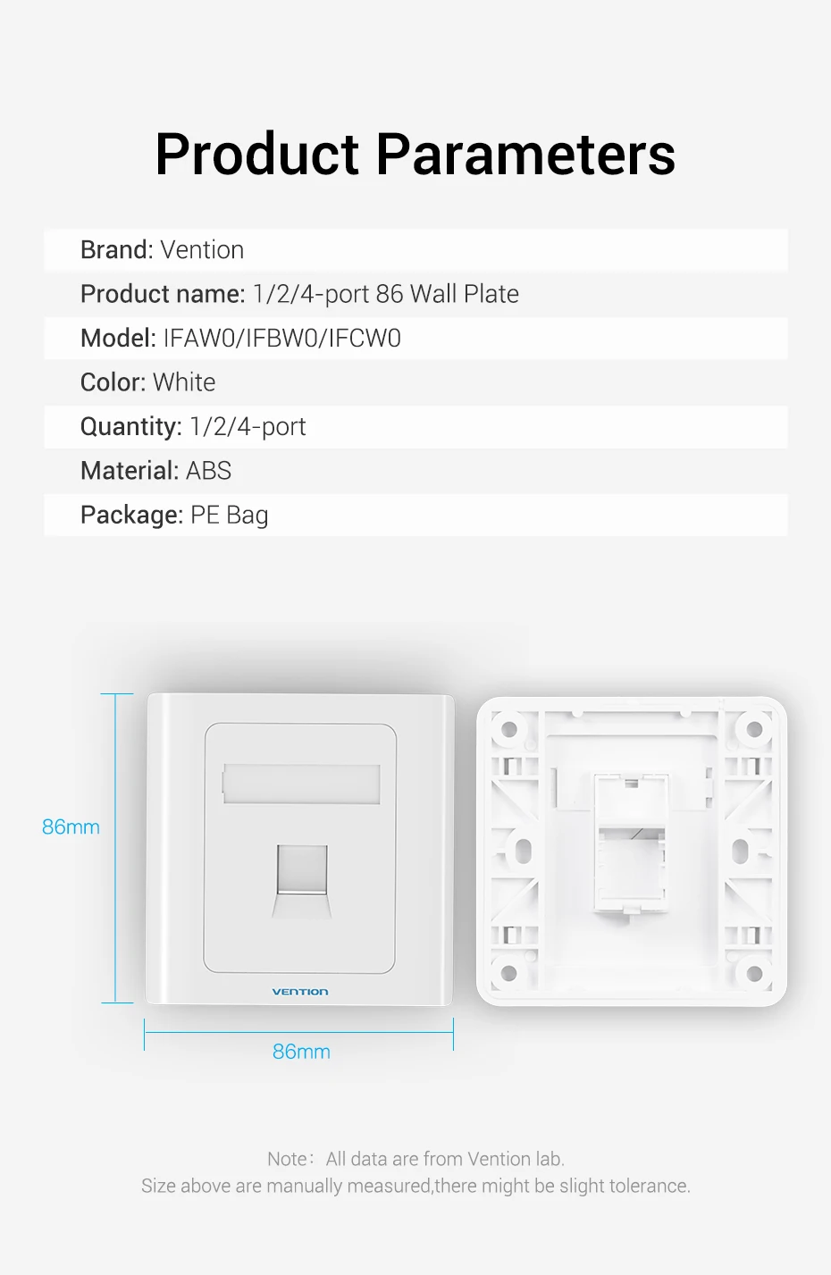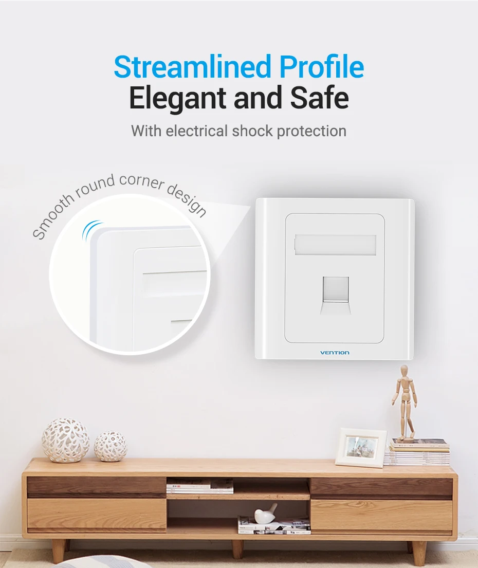 Vention Network placa frontal de 1 puerto, toma de corriente de pared Ethernet, placa de pared Modular de 2 puertos y 4 puertos, adecuada para caja inferior de 80x80mm