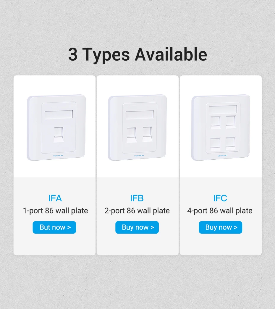 Comprar Vention Network placa frontal de 1 puerto, toma de corriente de pared Ethernet, placa de pared Modular de 2 puertos y 4 puertos, adecuada para caja inferior de 80x80mm