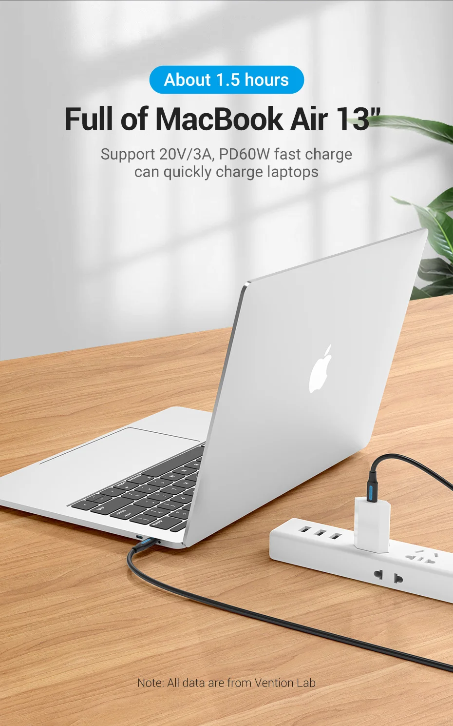 Admite carga rápida de 20 V/3 A, PD60 W, puede cargar rápidamente computadoras portátiles