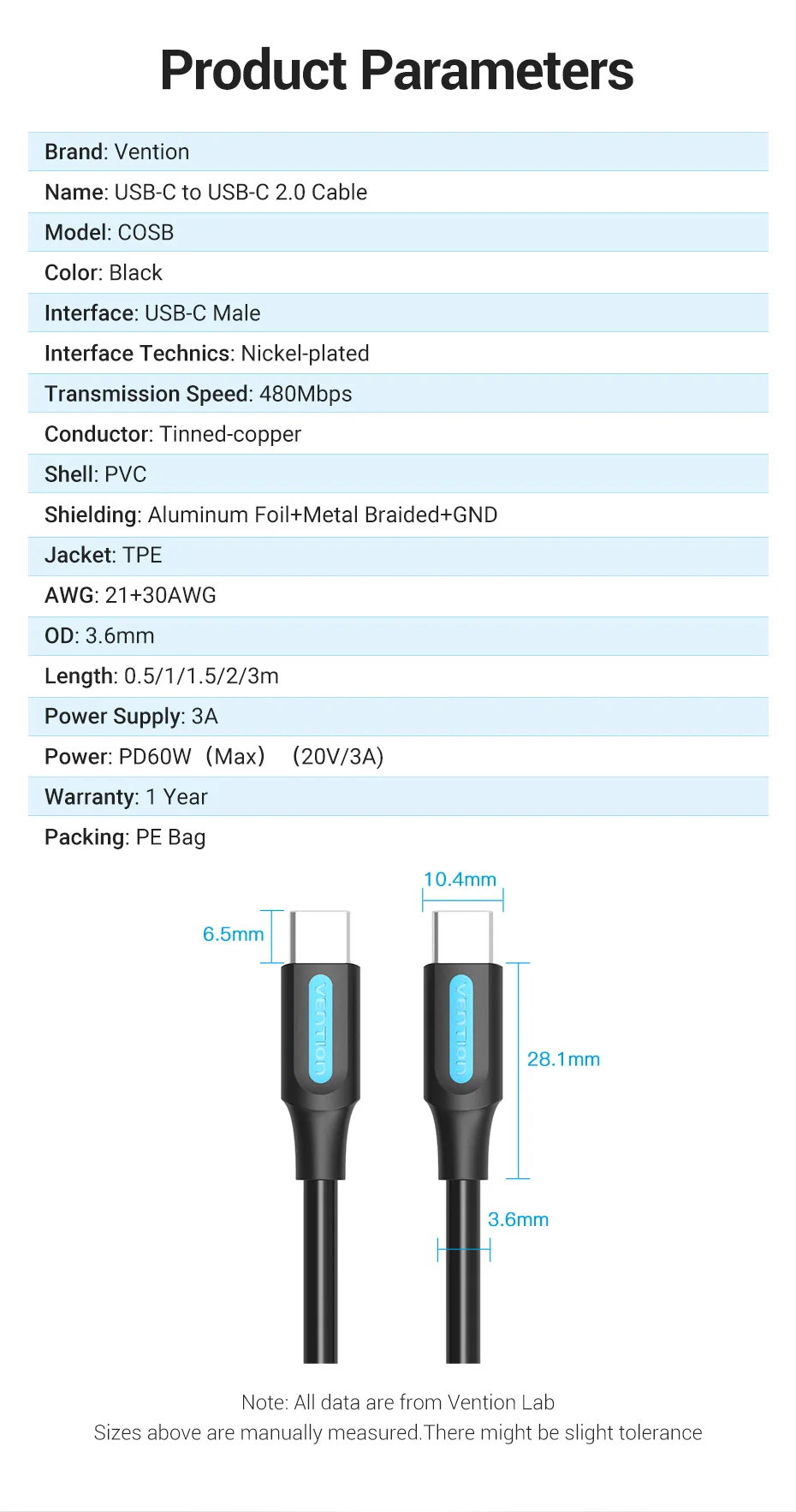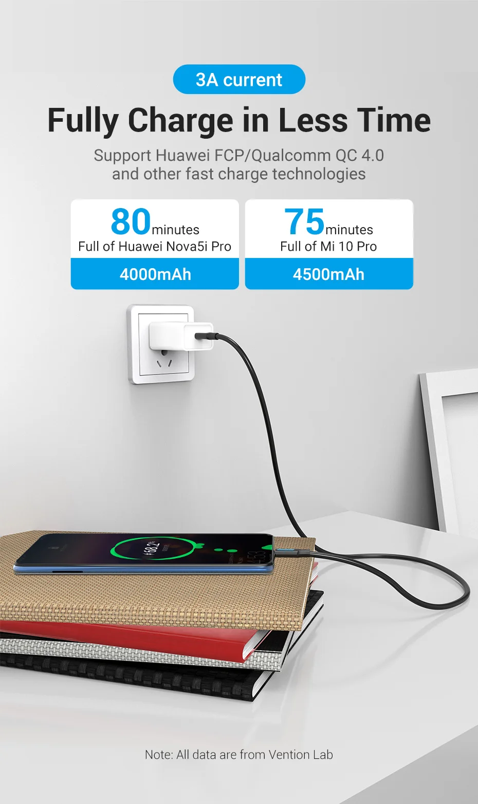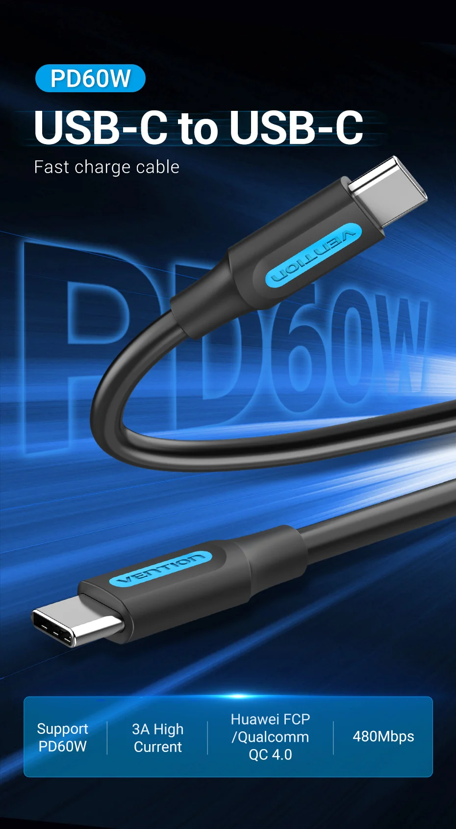 Comprar Vention PD 60W USB C a USB tipo C Cable de carga rápida Cable de datos de carga rápida 4.0 USB-C para Macbook Pro Huawei P30 Samsung S20
