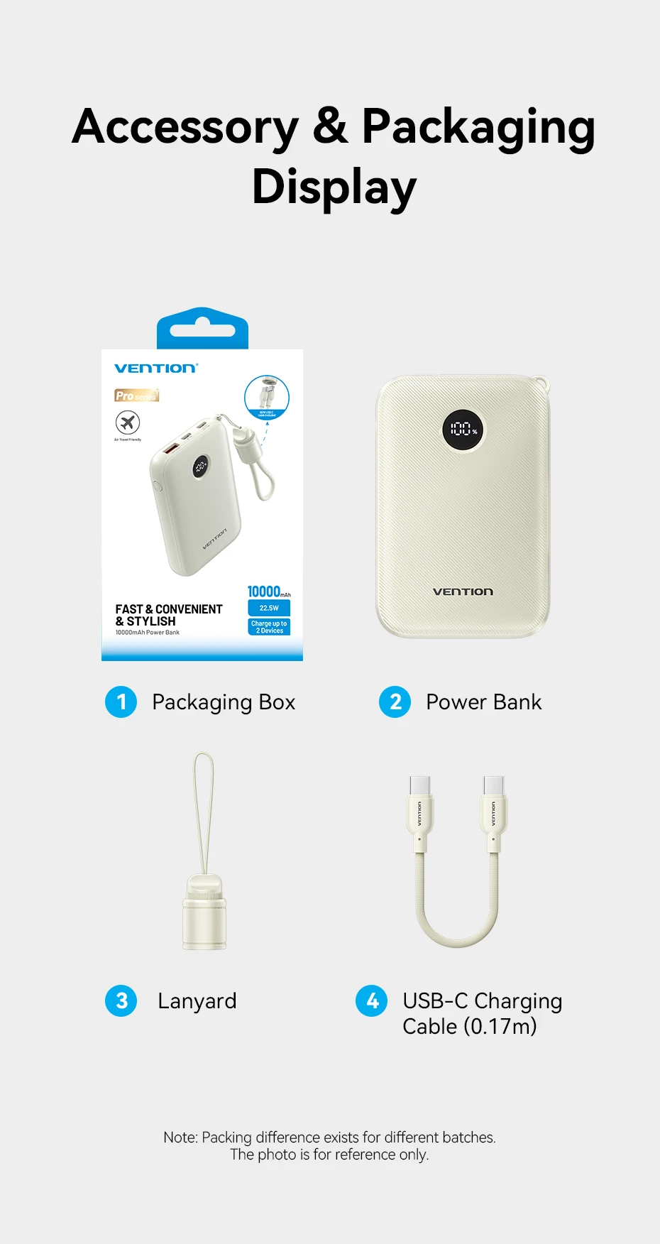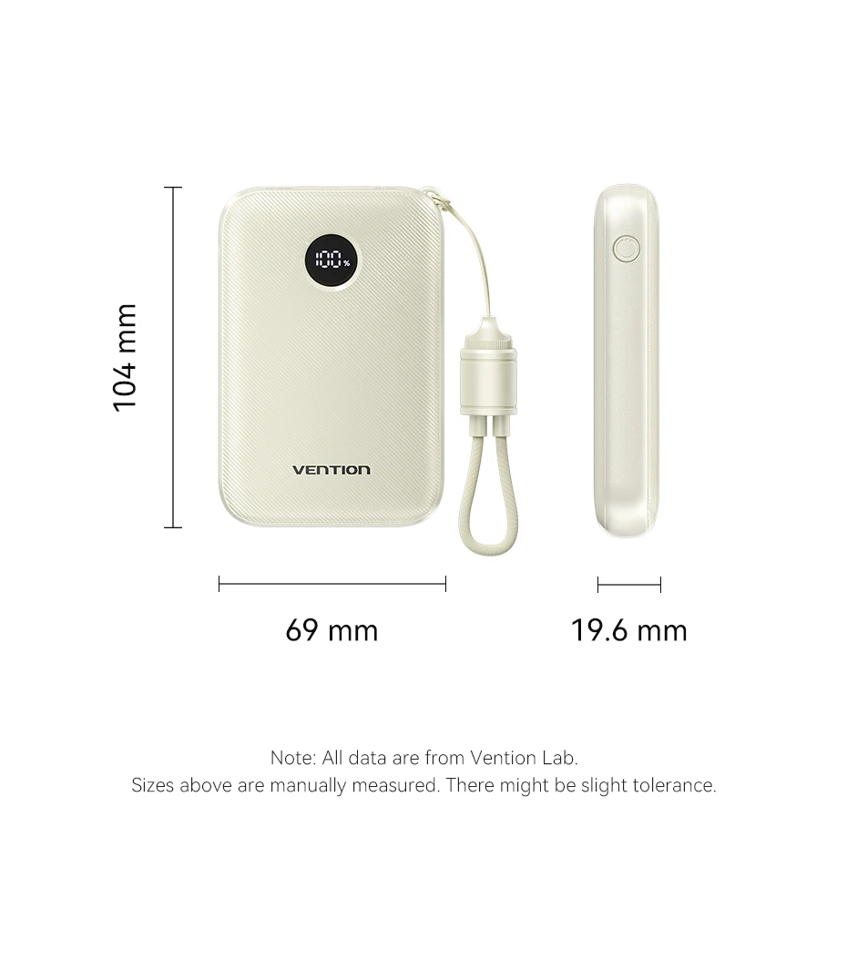 Con una robusta capacidad de 10000 mAh, el Vention Power Bank garantiza que sus dispositivos permanezcan encendidos mientras viaja.