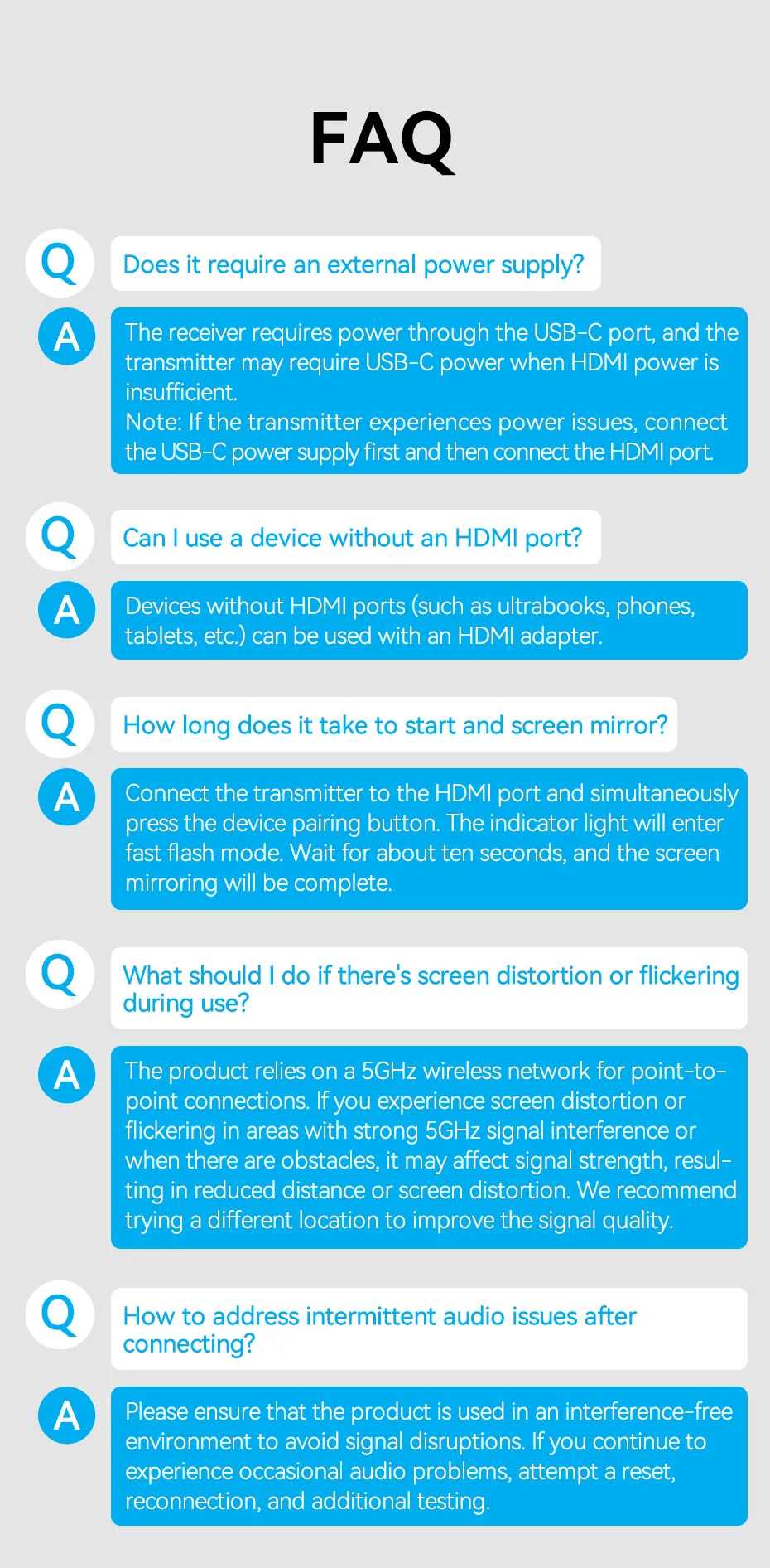 Plug and Play:El transmisor y receptor HDMI inalámbrico Vention son fáciles de usar, no necesitan conexión de aplicación, Bluetooth o Wi-Fi, y evitan los problemas de transmisión de señal inestable e interrumpida causados por cables enredados. Plug and Play no está limitado por tiempo, espacio y red.
