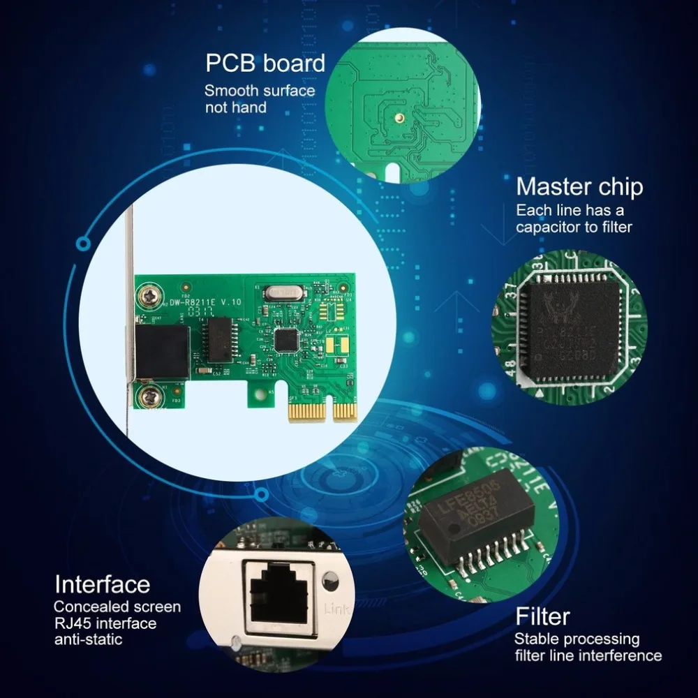 Cantidad: 1 piezasEstándar del puerto principal: RJ45Velocidad de transmisión: 1000Mbps, dúplex completo/semidúplexUsando el chip RTL8111E, cada red tiene una dirección MAC separada, dentro de la red aérea de la familia (no admite disco), compatible con PCI-E 1X/4X/16XCuando el sistema informático se puede instalar directamente identificar, SIN controlador, si es necesario, póngase en contacto con nosotrosSoporte: Dos, WinNt3.51, 95, XP, Vista, 2000, 7 8 , etc.Fácil y cómodo de usar