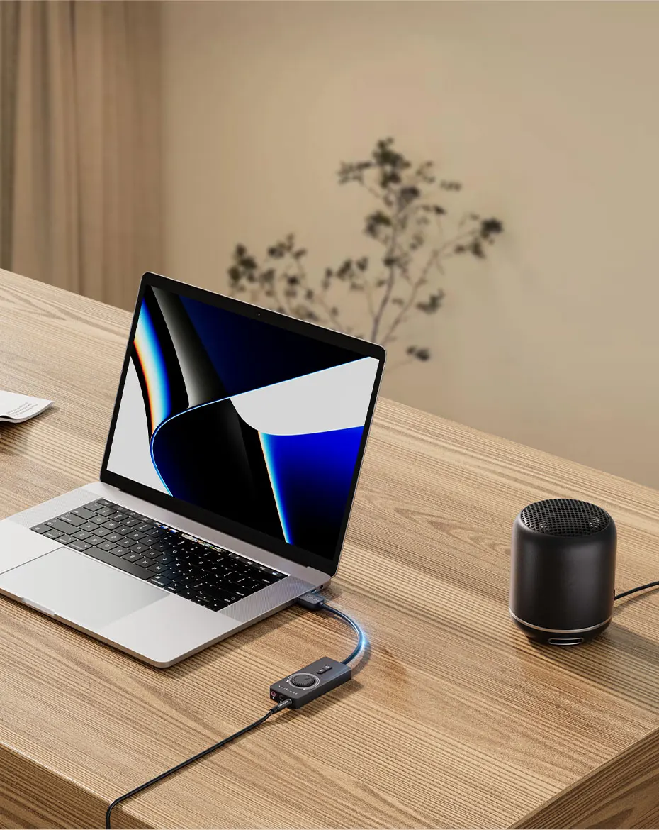 El adaptador de Audio de tarjeta de sonido USB Vention puede evitar la tarjeta de sonido defectuosa o el puerto de audio/microteléfono defectuoso de 3,5mm de su computadora portátil/escritorio y recuperar la función de audio para usted. Ahorra el coste de sustitución de una tarjeta de sonido con errores.