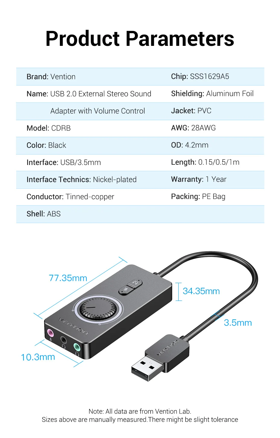 Comprar Vention-tarjeta de sonido USB, interfaz de Audio, conector externo de 3,5mm, adaptador de altavoz de micrófono para ordenador portátil, PS4, PC, auriculares, tarjeta de sonido de Audio