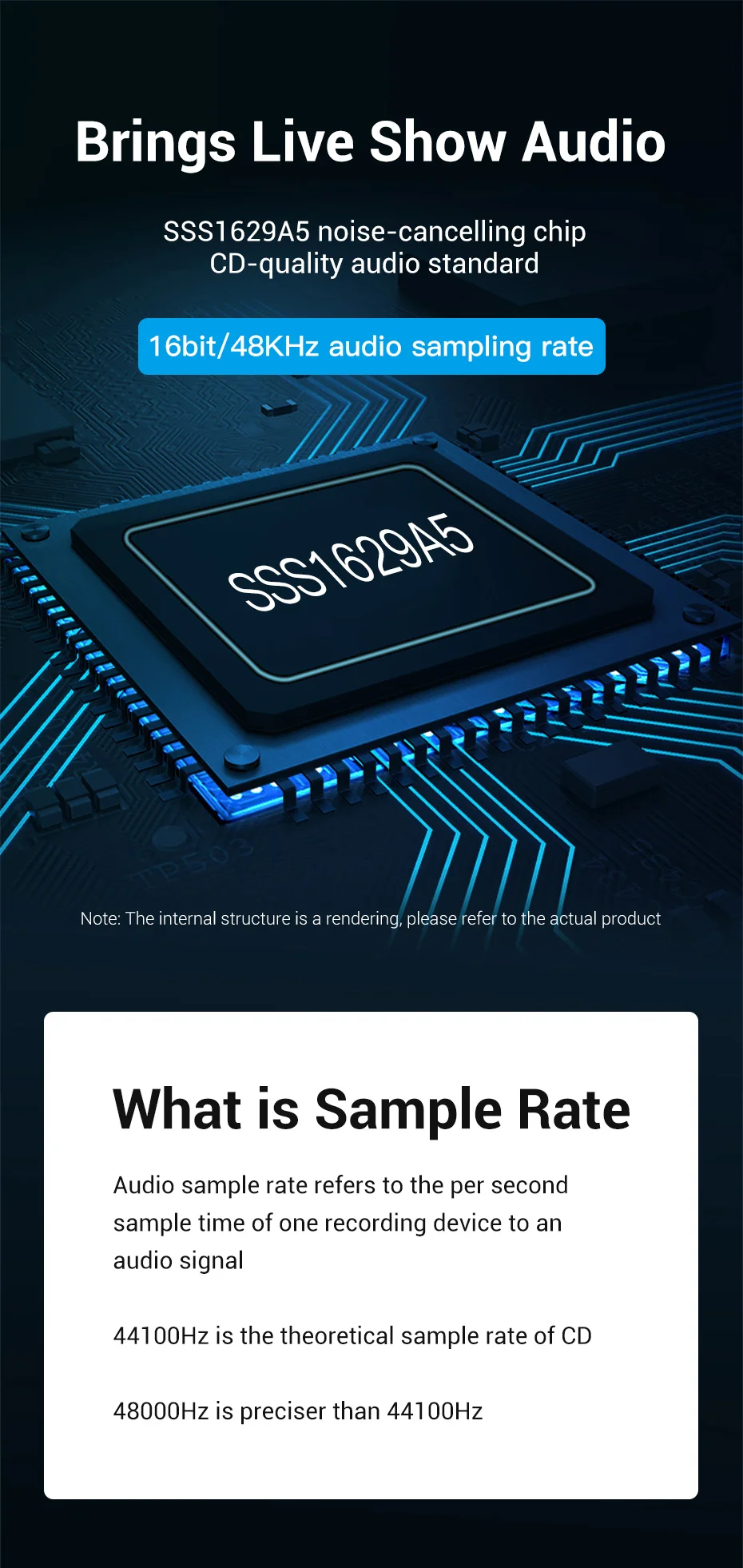 Chip de cancelación de ruido SSS1629A5, estándar de audio de calidad de CD