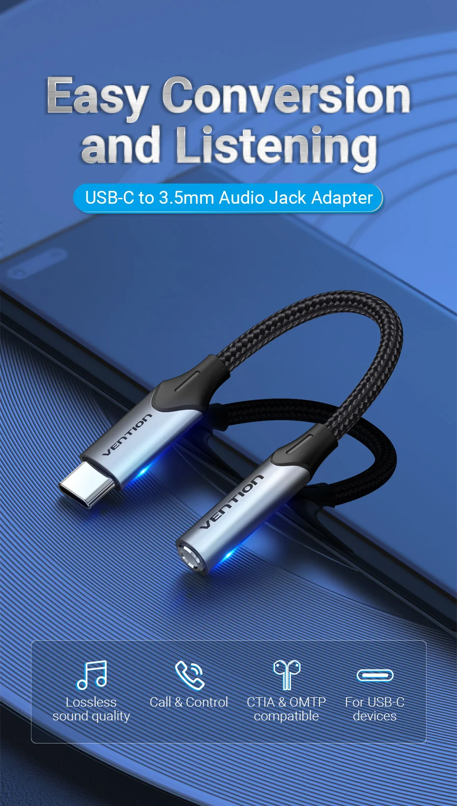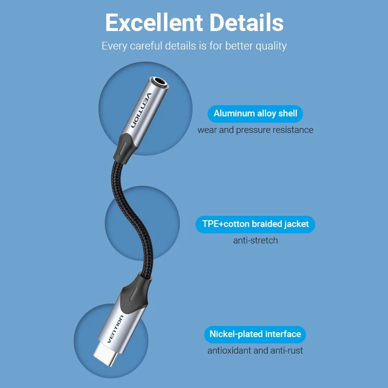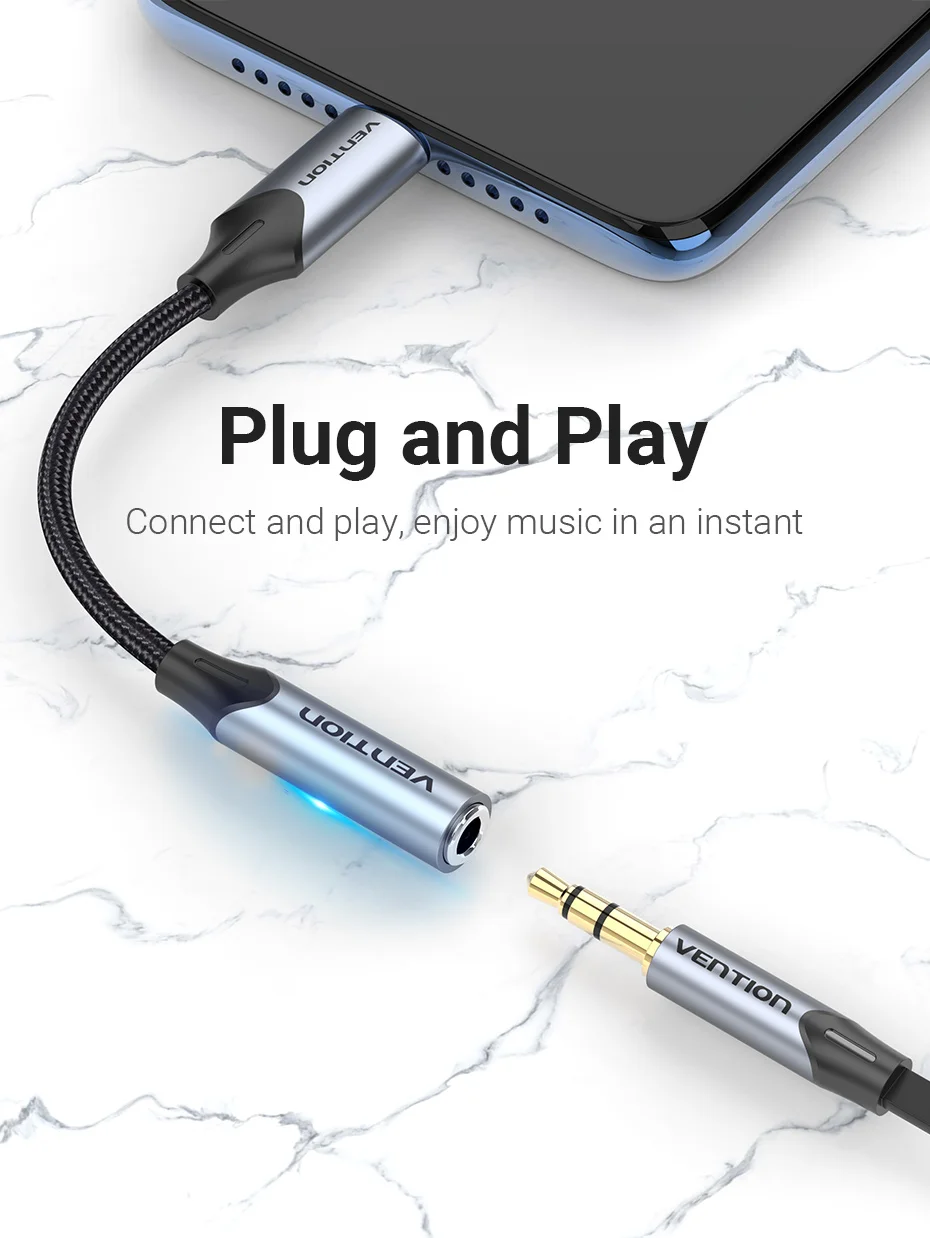 Comprar Vention tipo C a 3,5 Jack auriculares USB-C tipo C a 3,5mm adaptador auxiliar para auriculares Cable de Audio para Huawei P40 P30 Pro Xiaomi 10 9