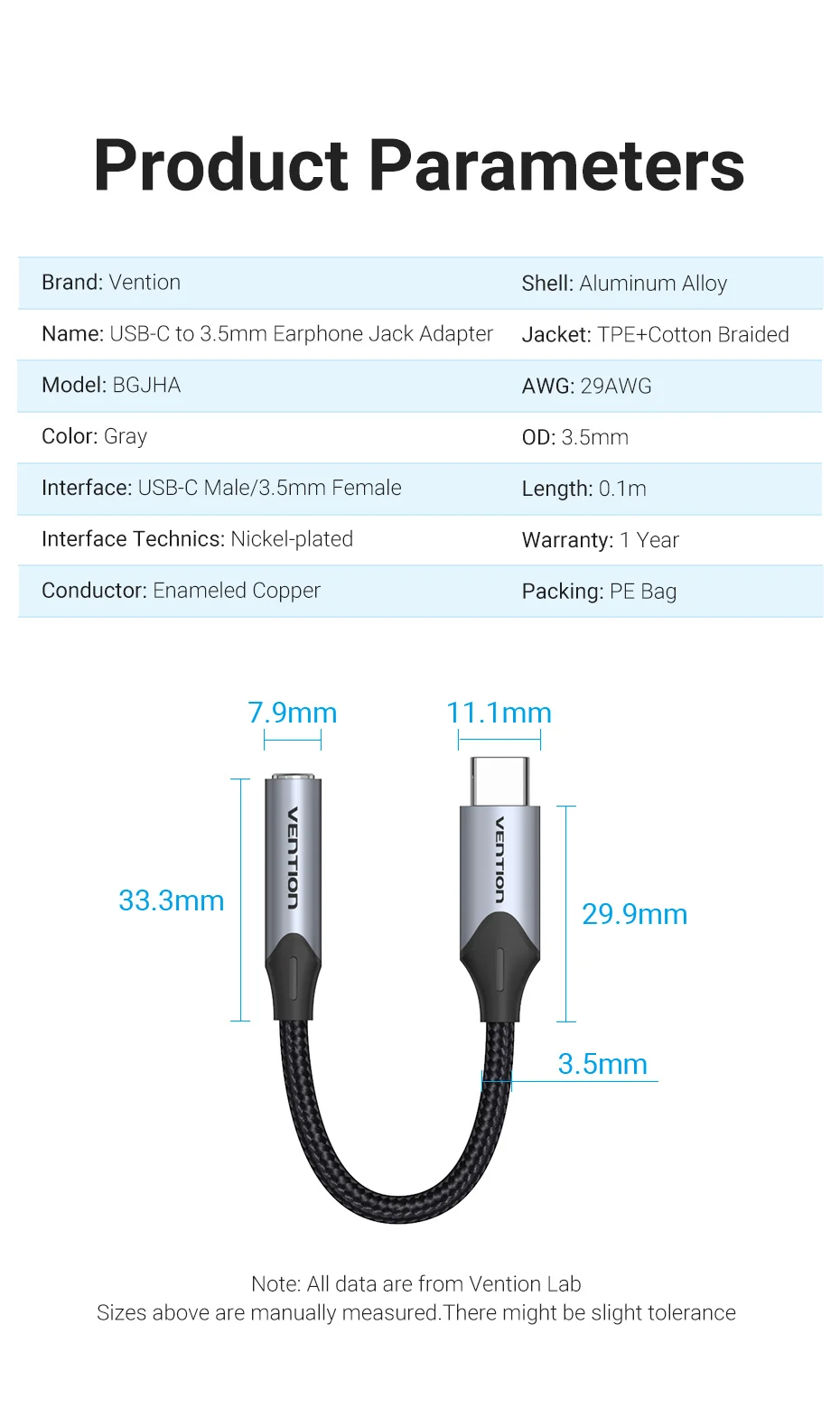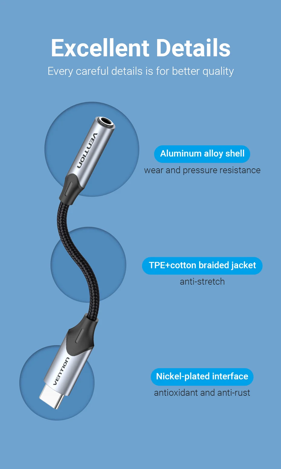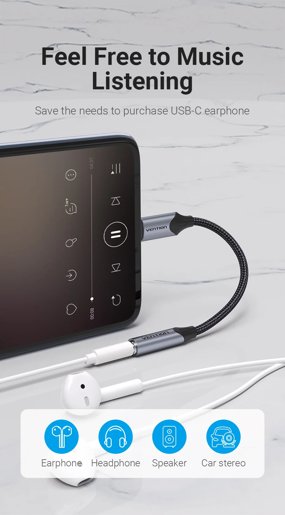 Comprar Vention tipo C a 3,5 Jack auriculares USB-C tipo C a 3,5mm adaptador auxiliar para auriculares Cable de Audio para Huawei P40 P30 Pro Xiaomi 10 9