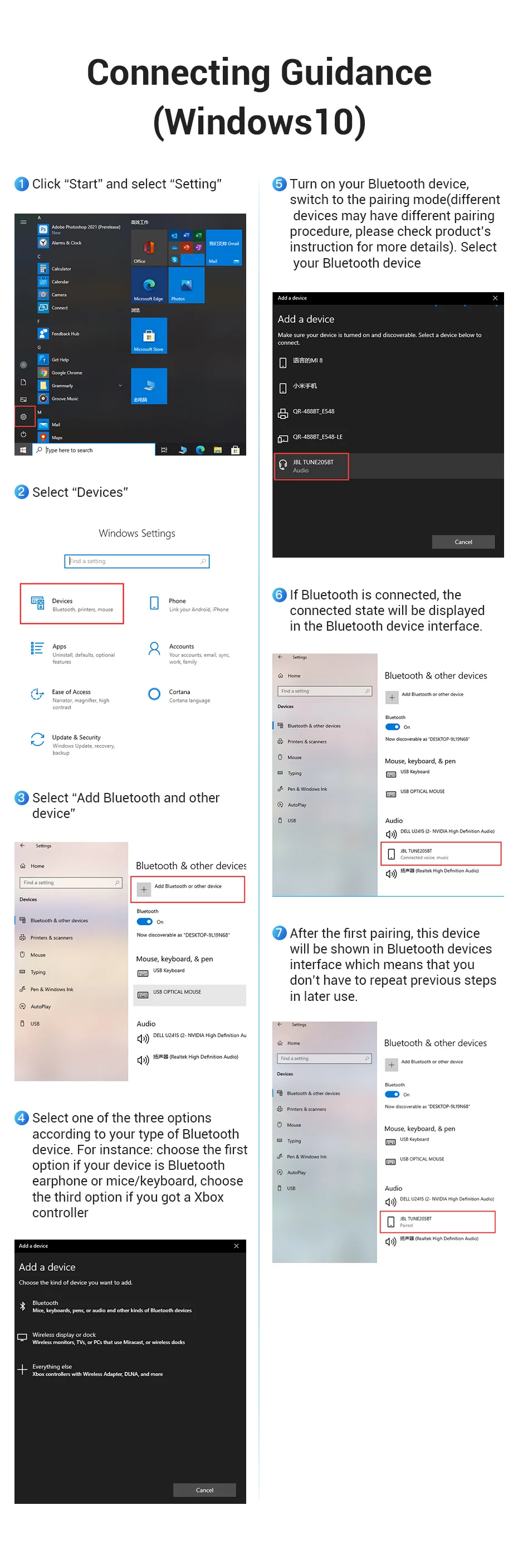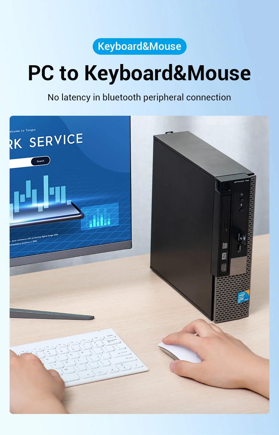 Fácil de agregar 7 dispositivos inalámbricos A LA PC a través del dongle Vention Bluetooth 5,0. Admite agregar un altavoz, Un auricular Bluetooth, un ratón, un teclado, un teléfono y una impresora simultáneamente al PC.