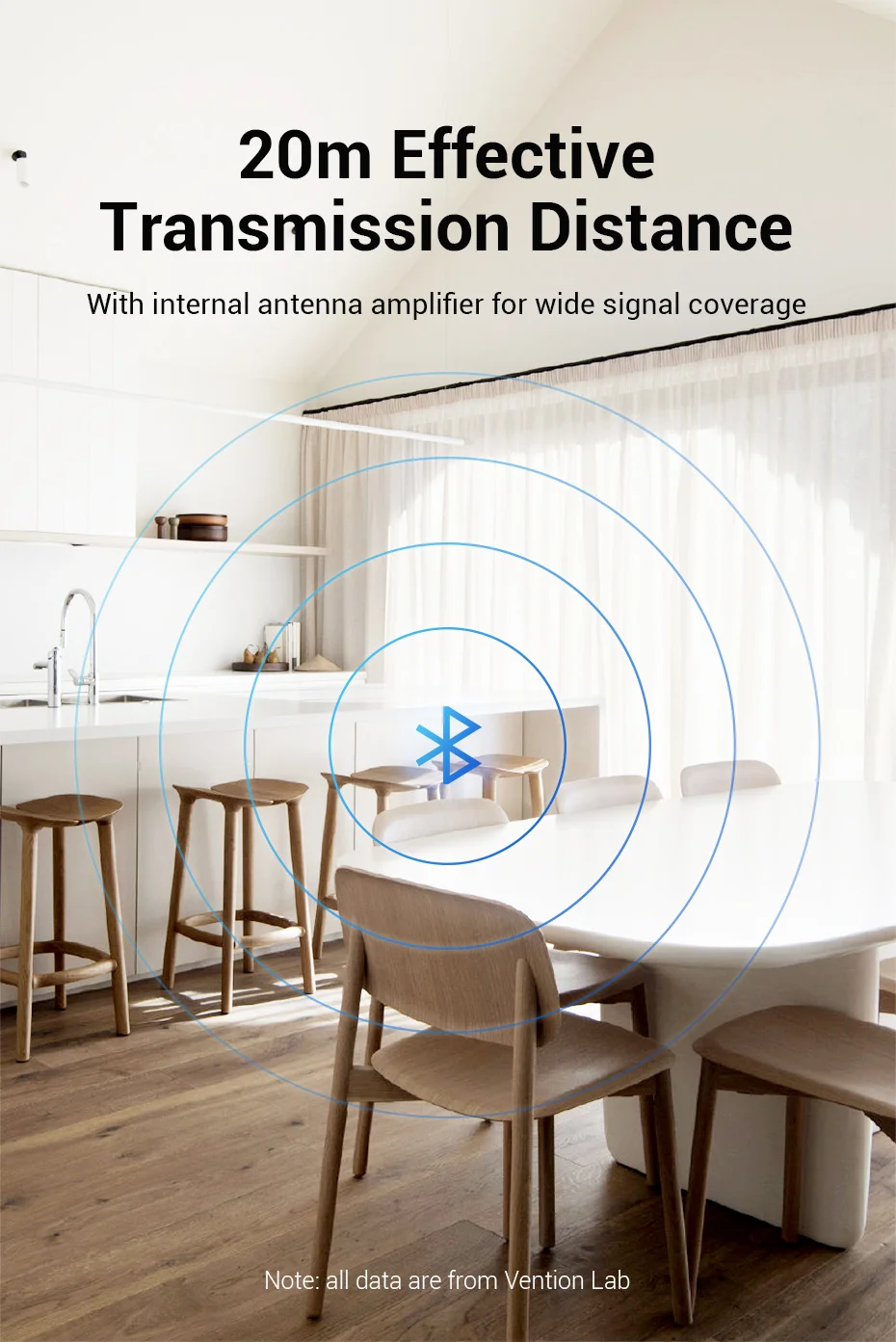 El adaptador Vention USB Bluetooth 5,0 admite la convivencia con la banda de 2,4 Wi-Fi GHz sin molestarse entre sí y transmitir sin problemas entre dispositivos.