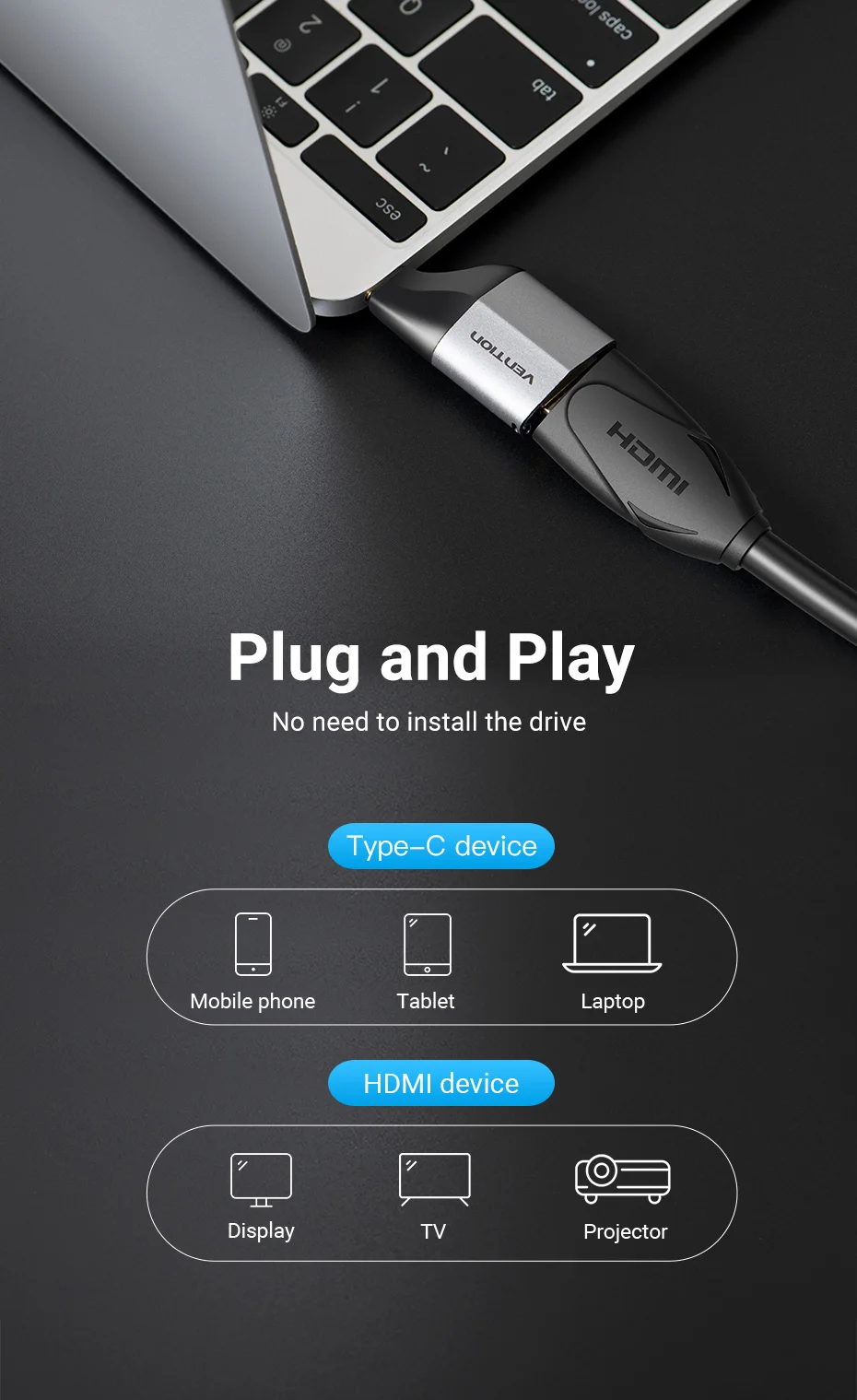 Comprar Vention USB C a HDMI 2,0 adaptador USB tipo C HDMI Cable 4K convertidor para MacBook Samsung S10/S9 Huawei P40 Xiaomi HDMI Cable