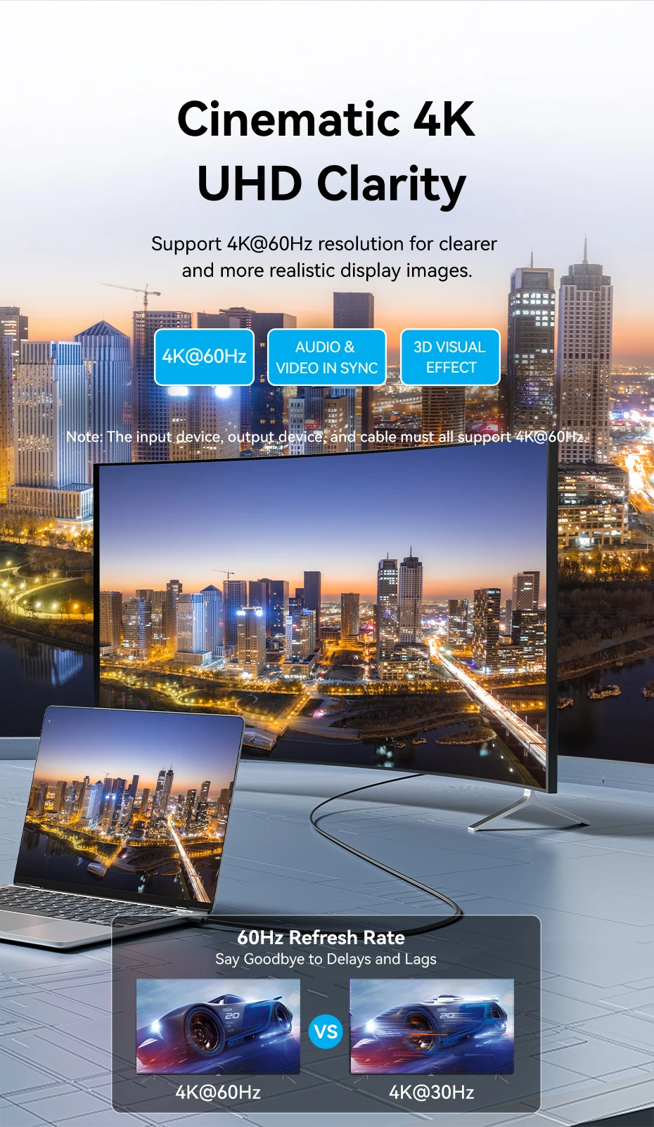 Admite resolución 4K@60Hz para imágenes de visualización más claras y realistas.
