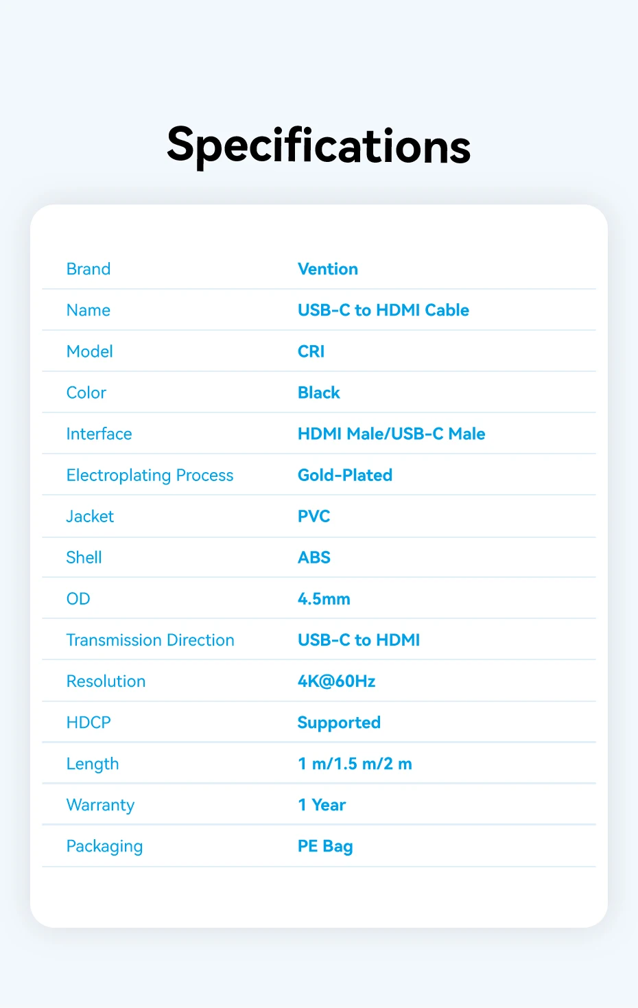 Comprar Vention USB C a HDMI 4K USB tipo C a HDMI Cable para tableta portátil TV Macbook Pro iPad Pro Samsung Galaxy Xiaomi Cable USB C
