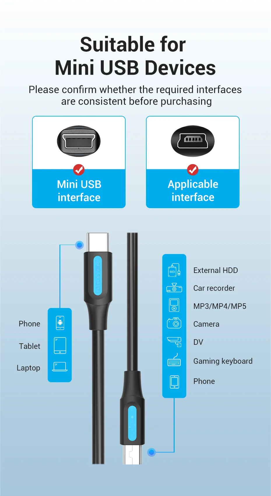 Comprar Vention USB C a Mini Cable USB tipo C adaptador para cámara digital MacBook proMP3 reproductor HDD tipo-c a Mini Cable USB