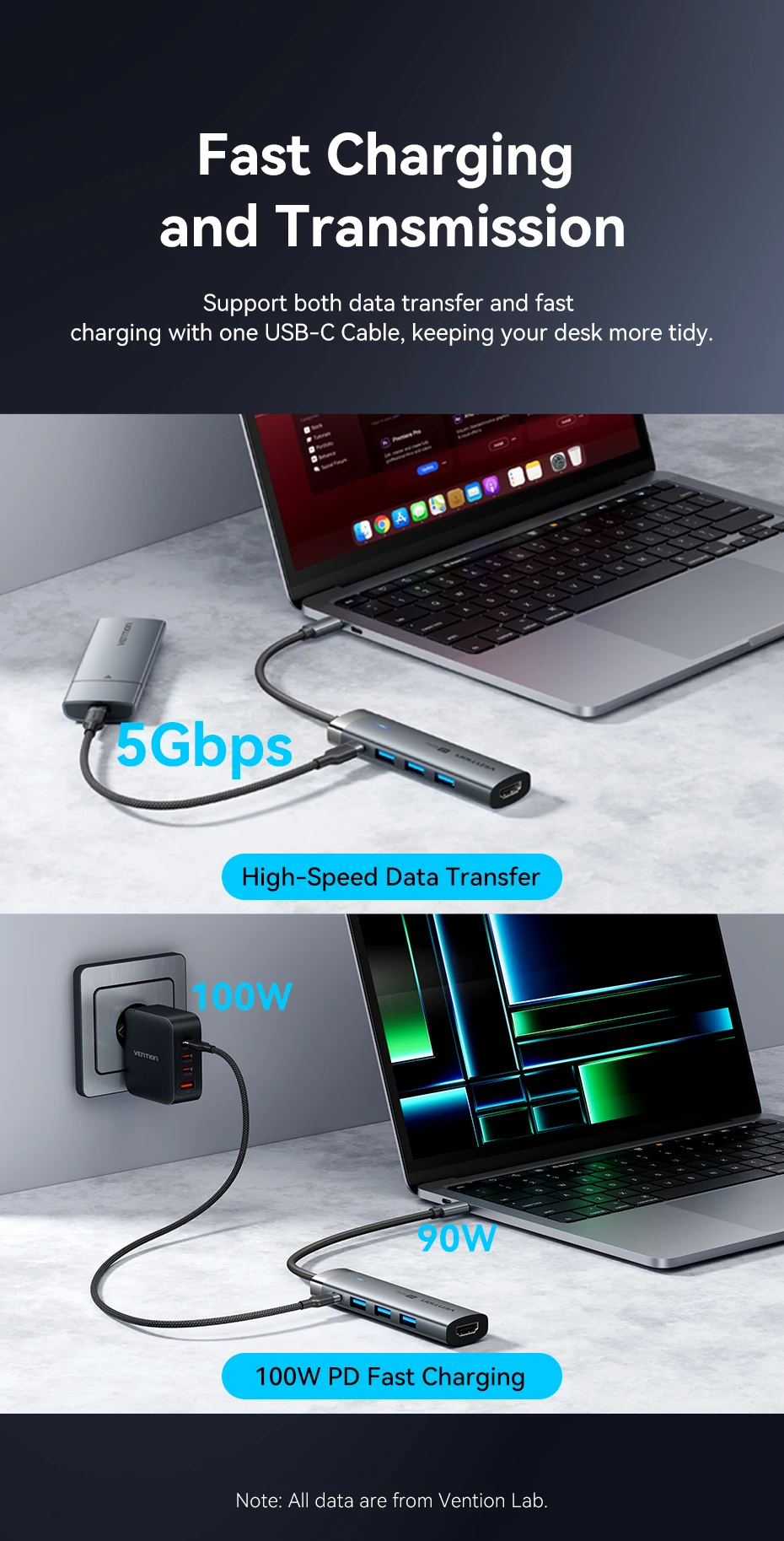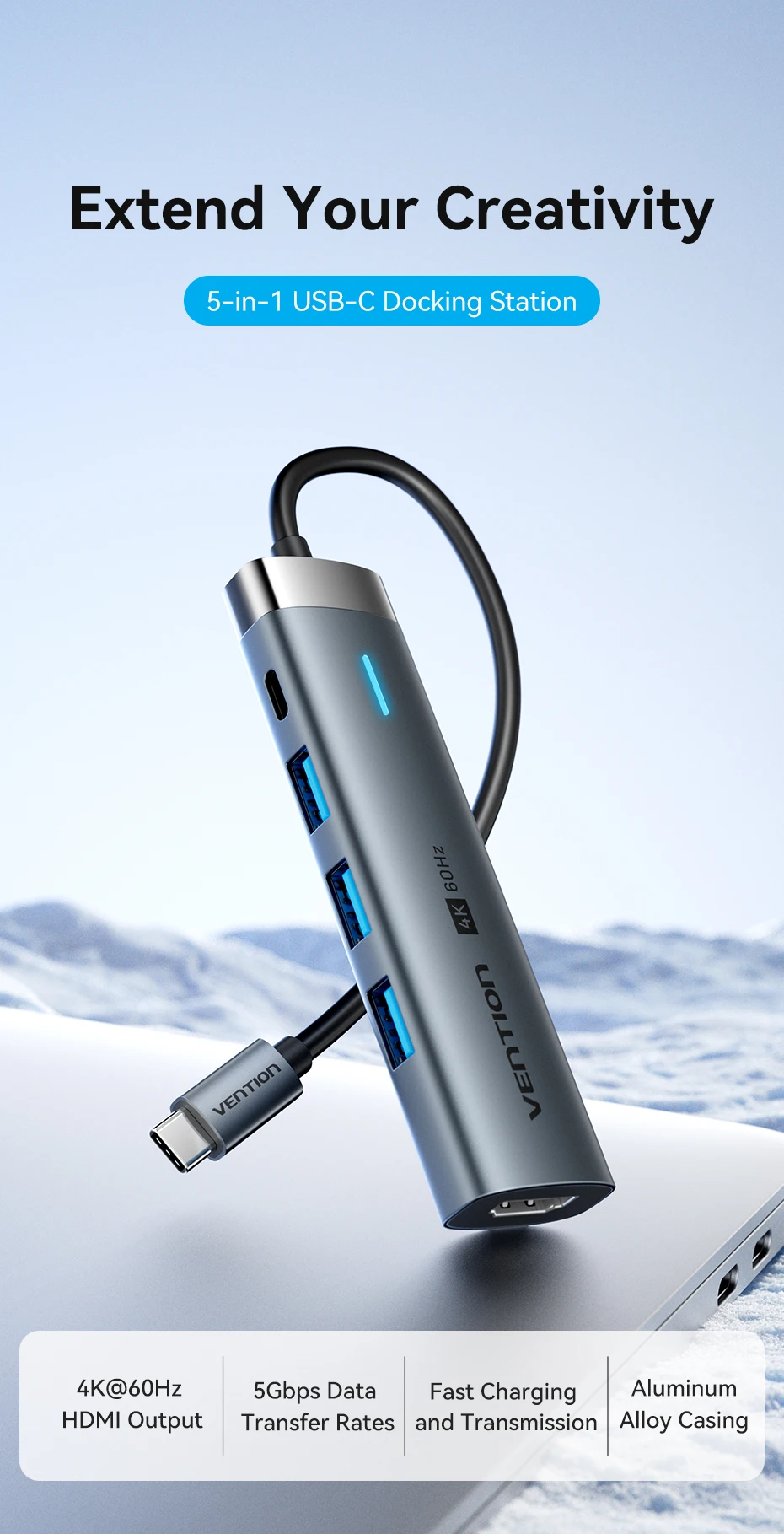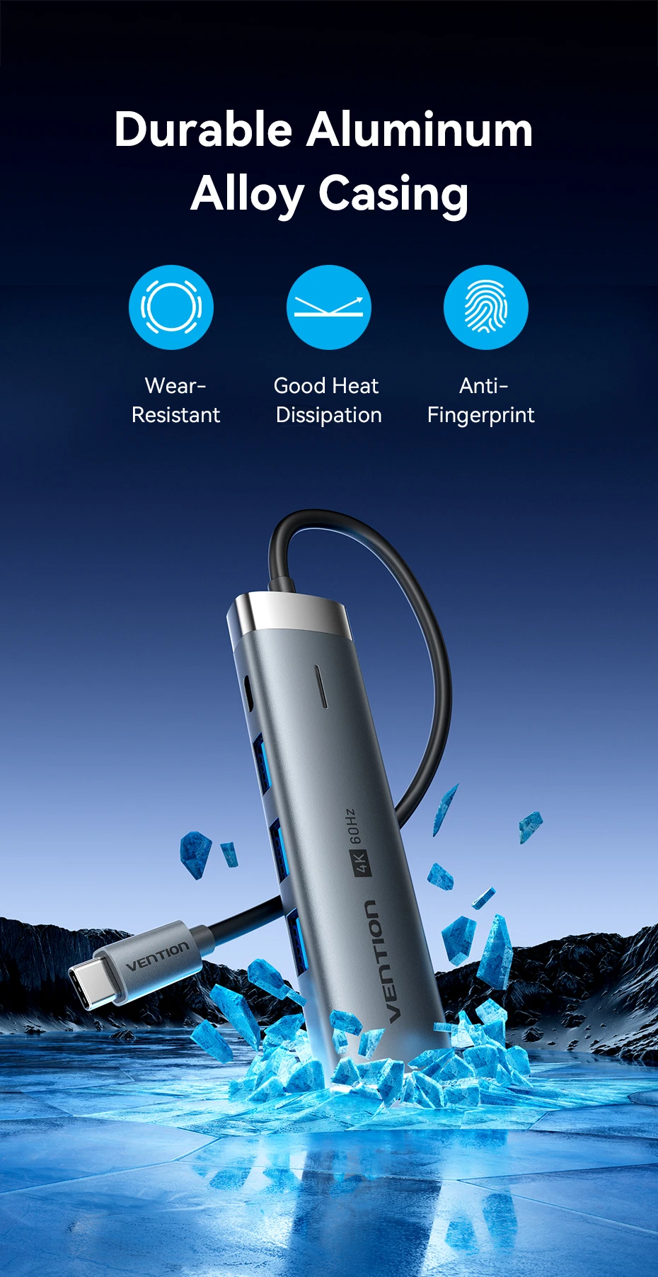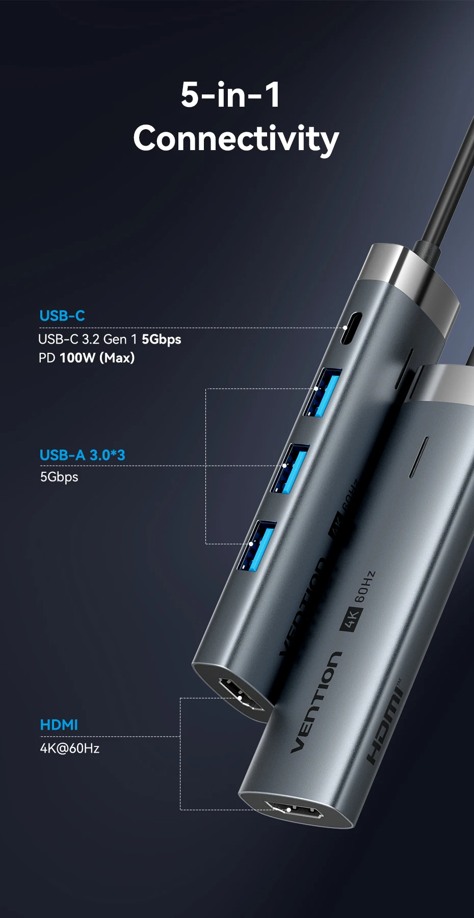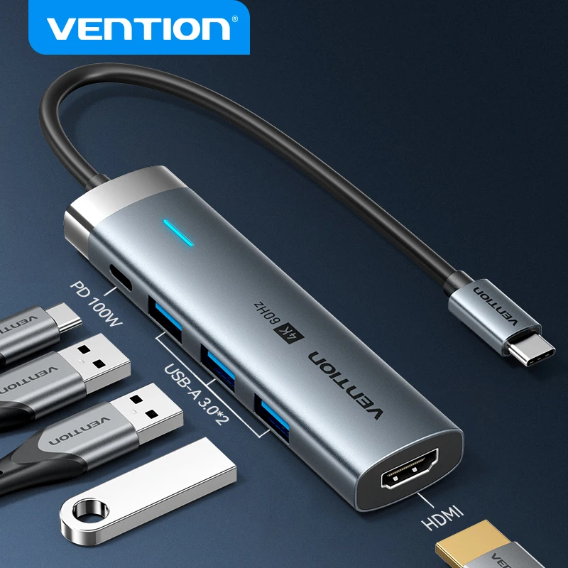 Comprar Vention USB C HUB 4K60Hz tipo C a HDMI PD 100W adaptador para Macbook iPad Pro Air M2 M1 Sumsang accesorios de PC USB 3,0 HUB
