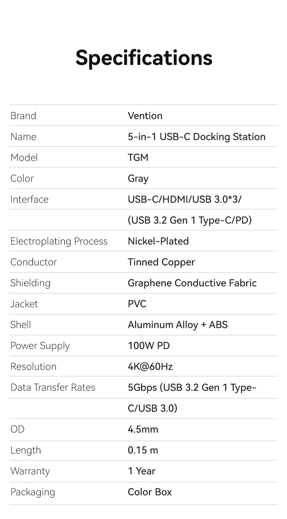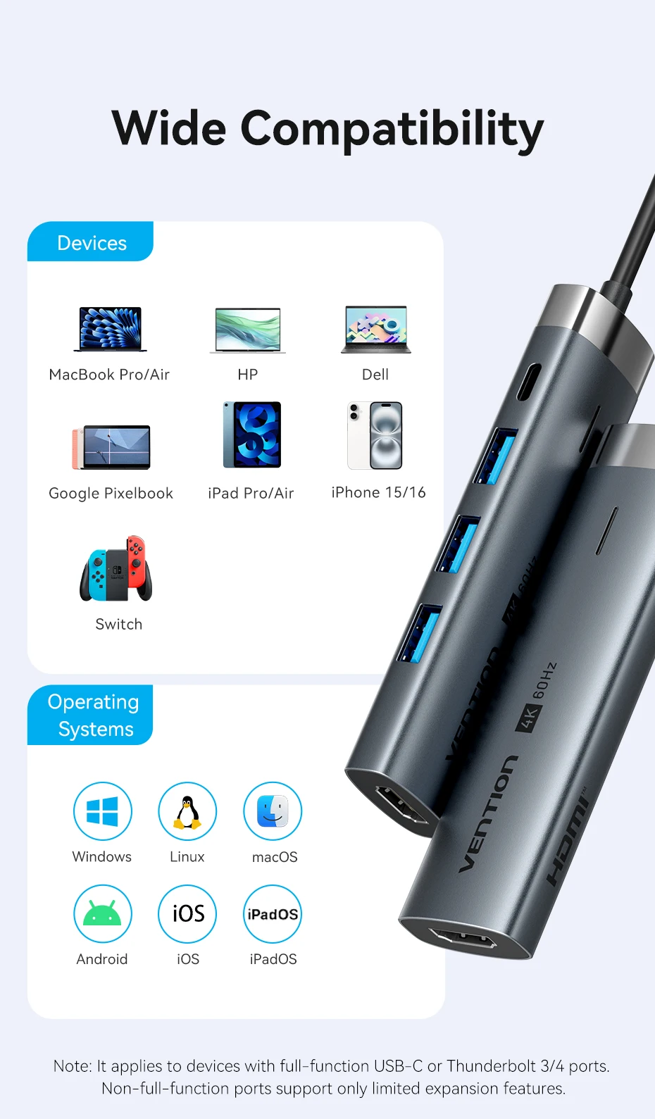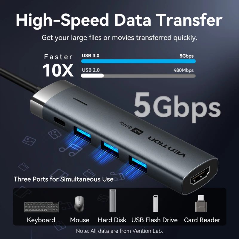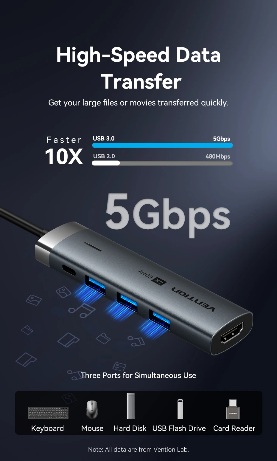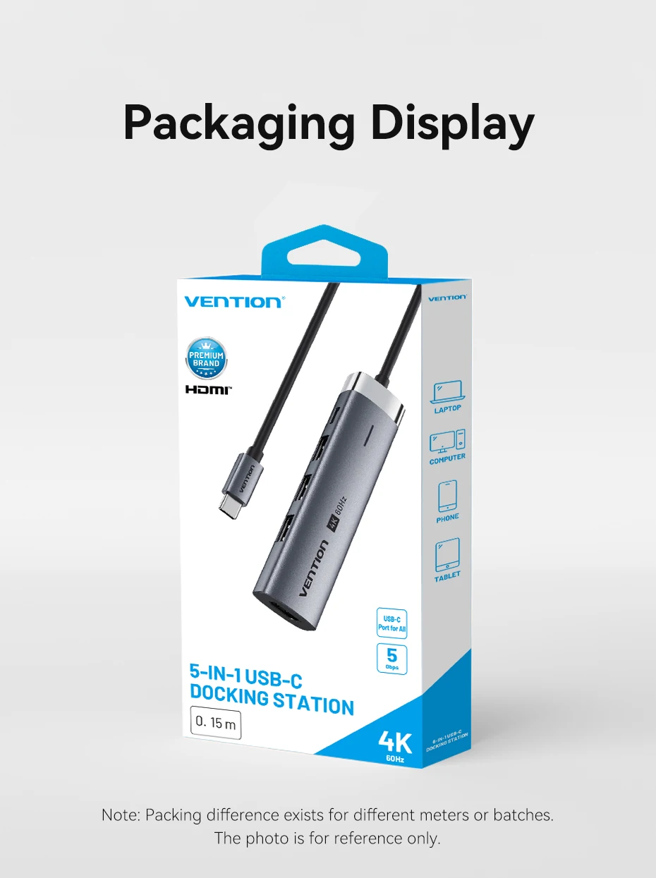 Comprar Vention USB C HUB 4K60Hz tipo C a HDMI PD 100W adaptador para Macbook iPad Pro Air M2 M1 Sumsang accesorios de PC USB 3,0 HUB