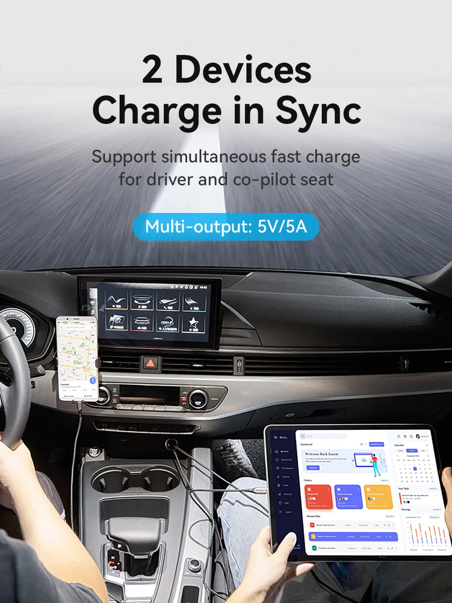 Admite carga rápida simultánea para el asiento del conductor y el copiloto
