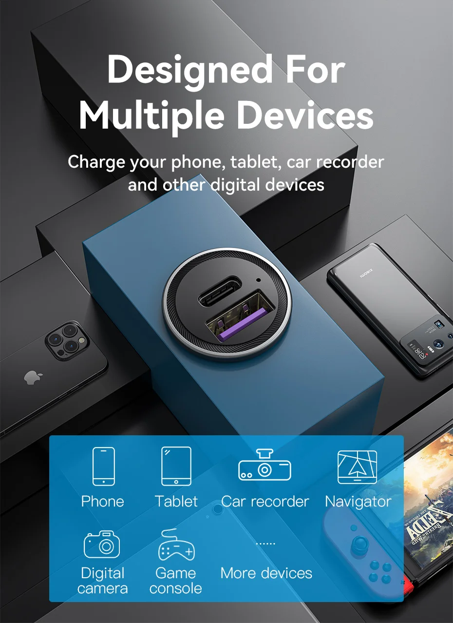 Carga tu teléfono, tableta, grabadora de coche y otros dispositivos digitales