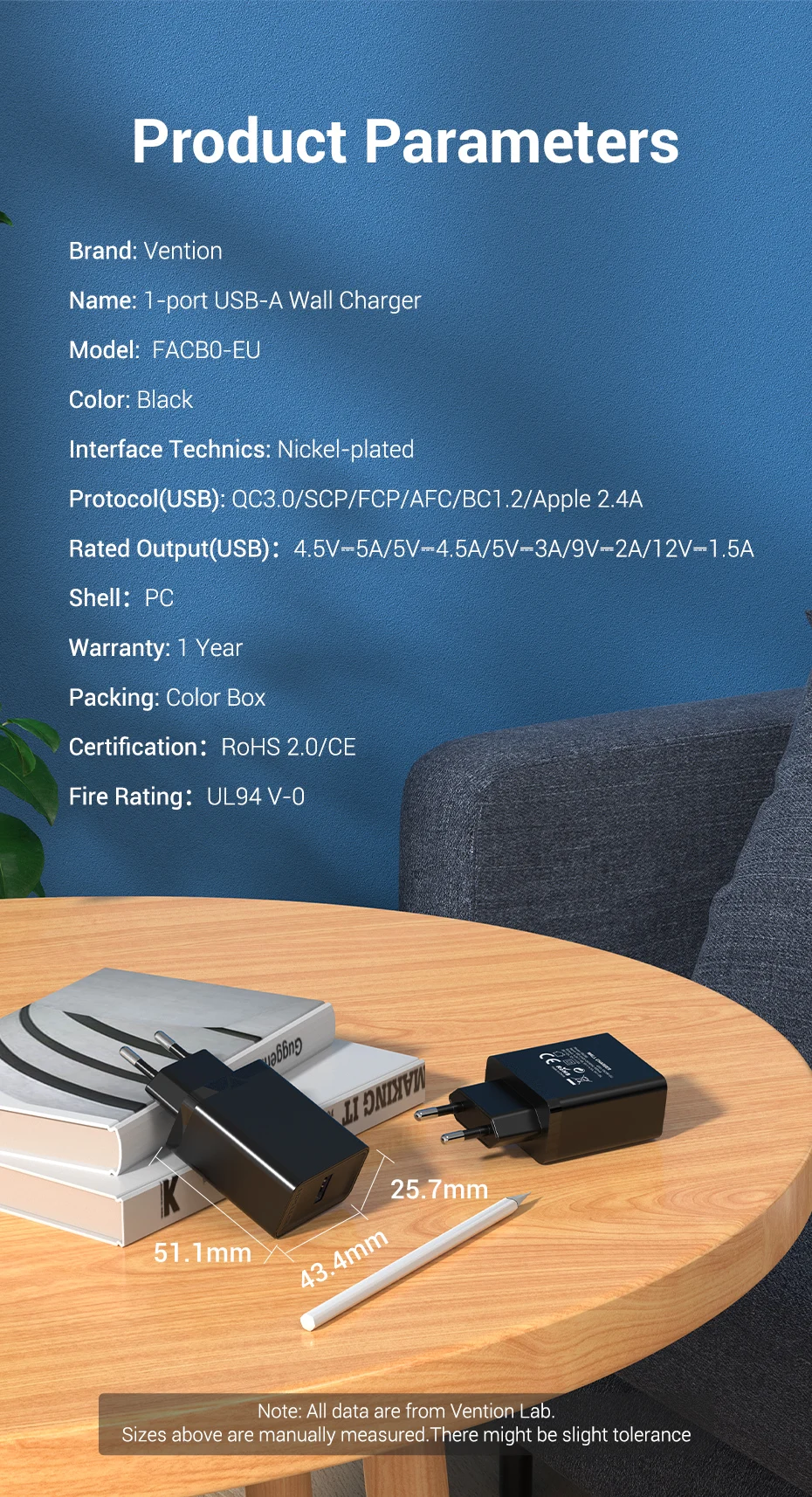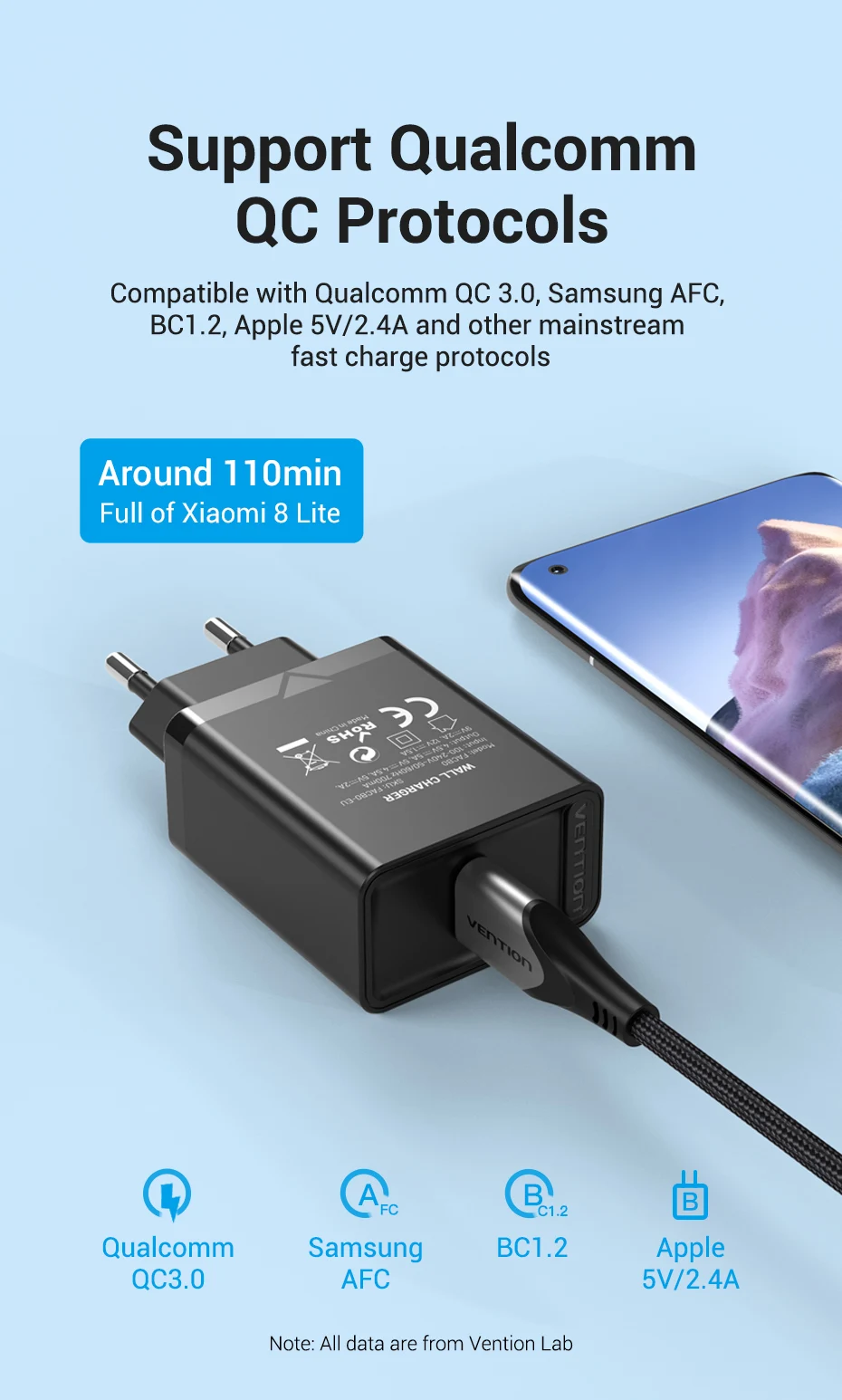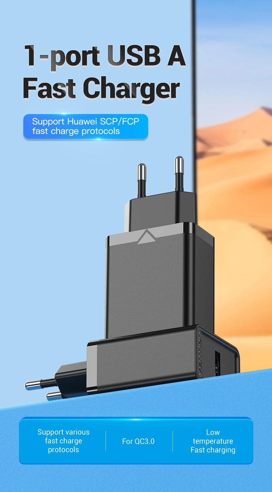 Comprar Vention USB Quick Charge 3,0 QC 22,5 W cargador USB para Huawei SCP Samsung Xiaomi carga rápida de pared cargador de teléfono móvil portátil