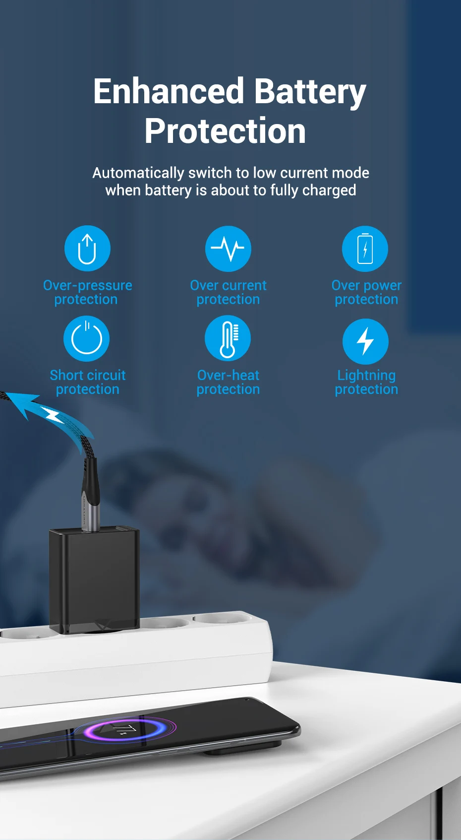 Compatible con Qualcomm QC 3.0, Samsung AFC, BC1.2, Apple 5V/2.4A y otros protocolos de carga rápida convencionales