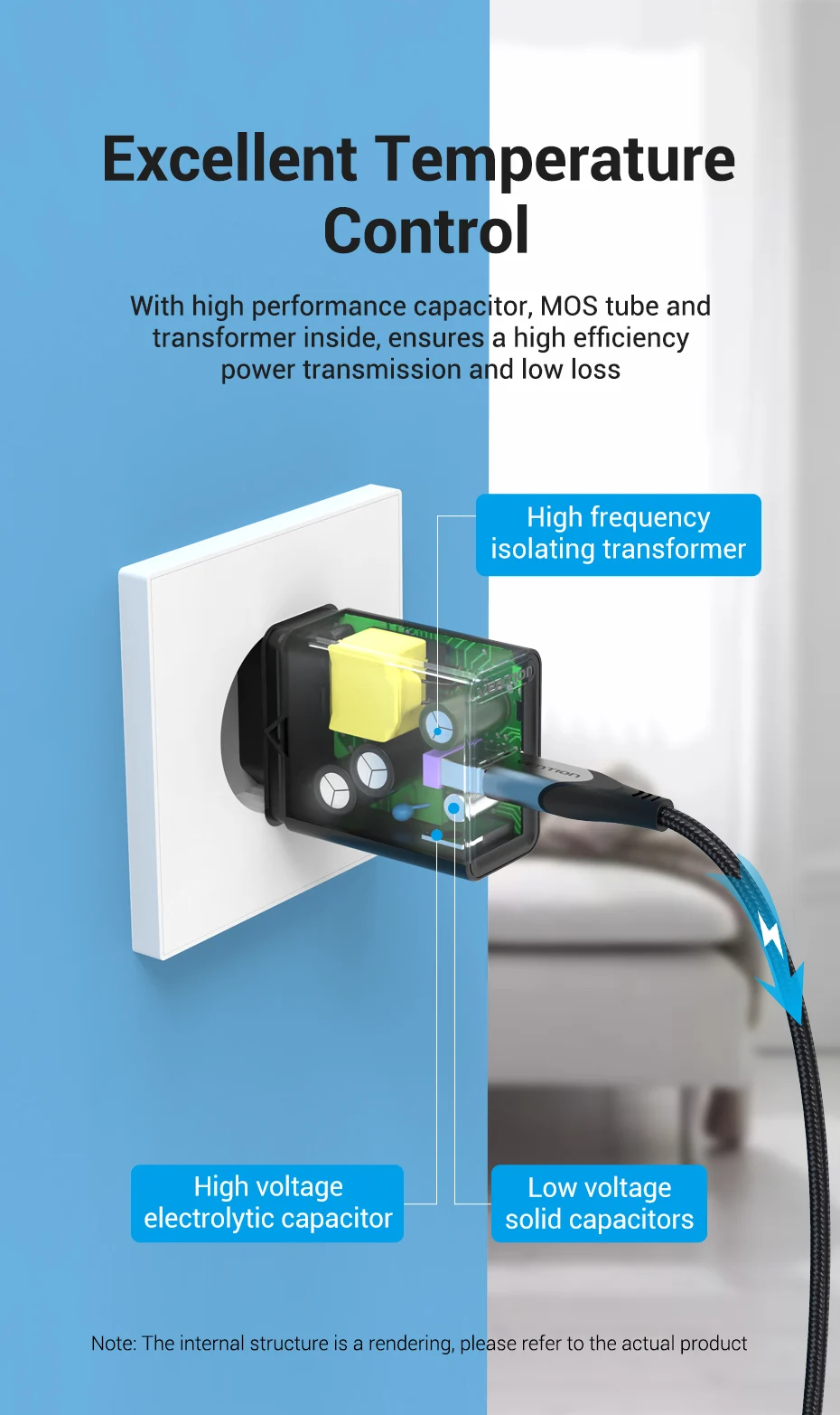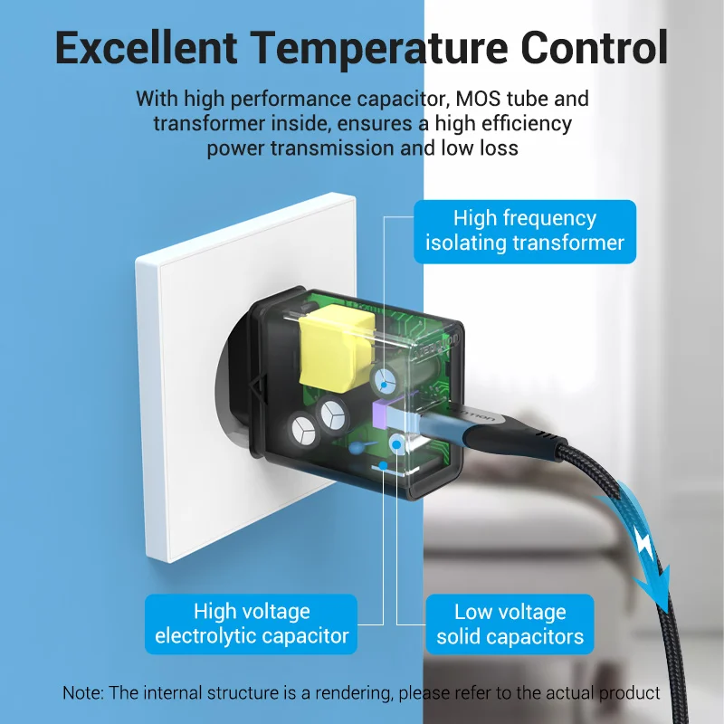 Con condensador de alto rendimiento, tubo MOS y transformador en el interior, garantiza una transmisión de potencia de alta eficiencia y baja pérdida.