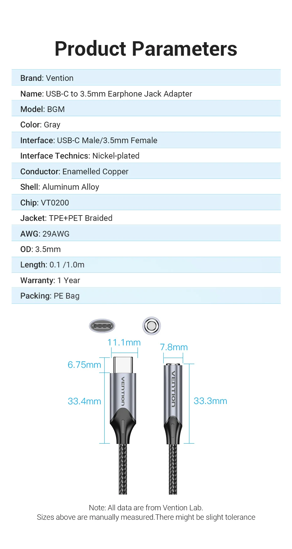 Comprar Vention USB tipo C a 3,5mm DAC Chip adaptador de auriculares USB C a 3,5 Cable auxiliar para PC para iPhone 15 Pro Max Macbook Samsung Galaxy