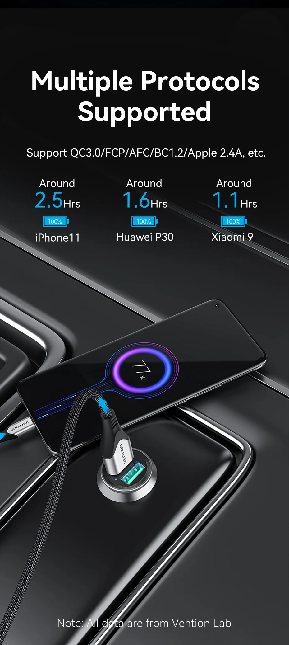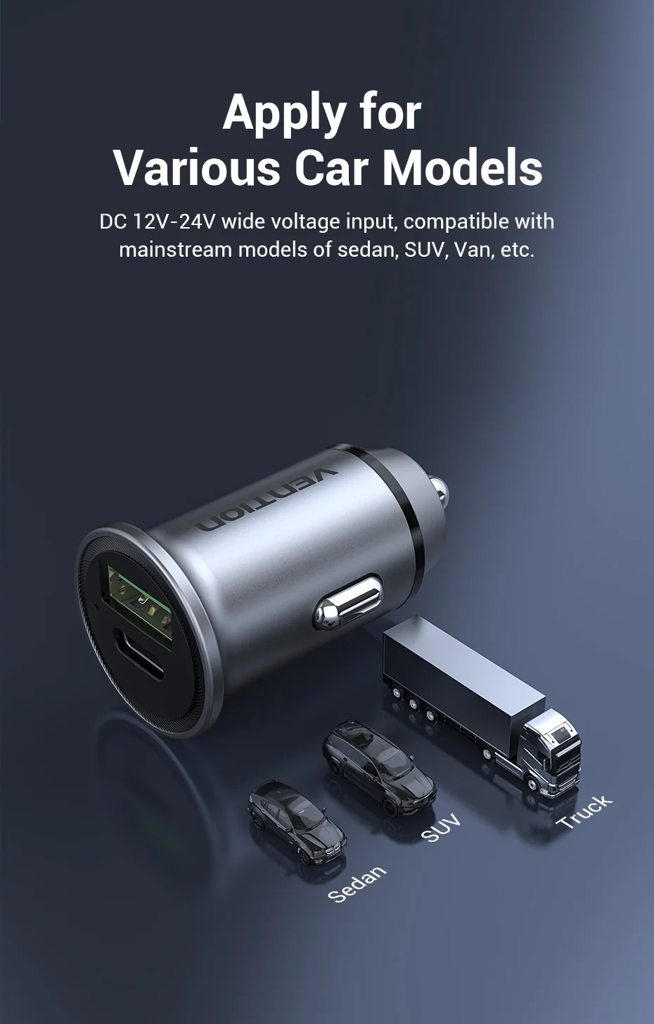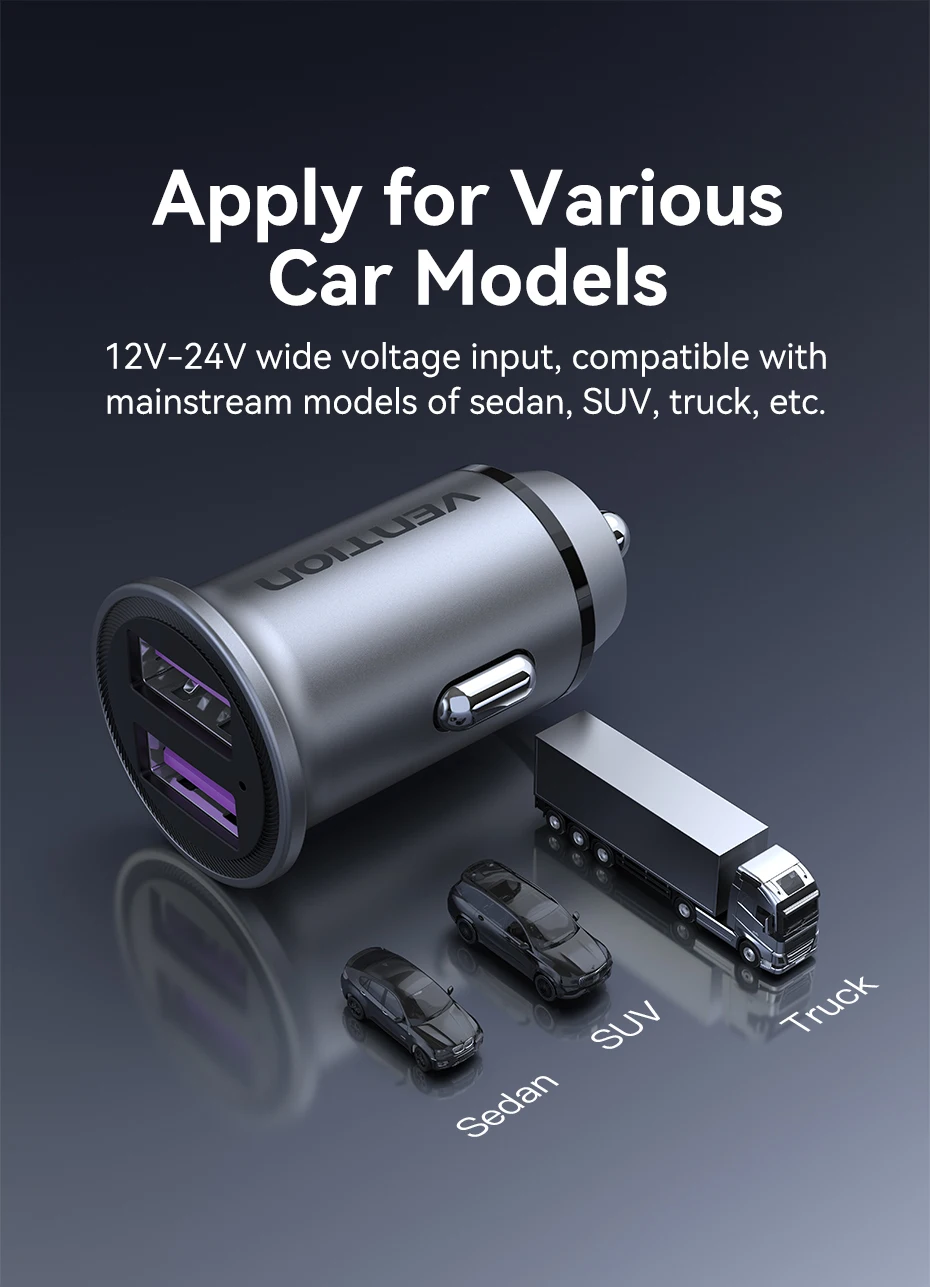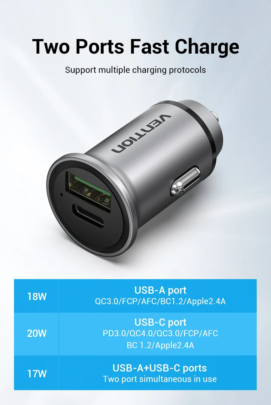 Comprar Vention Vention Cargador de coche USB de carga rápida para iPhone Xiaomi Huawei Samsung teléfono carga rápida SCP QC4.0 QC3.0