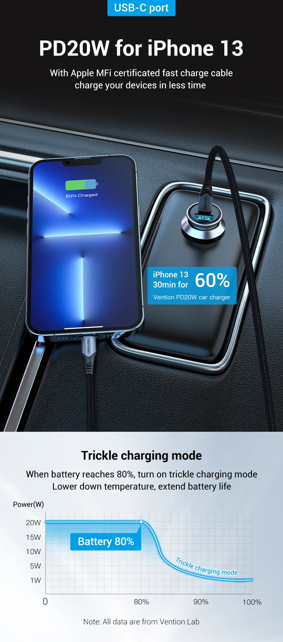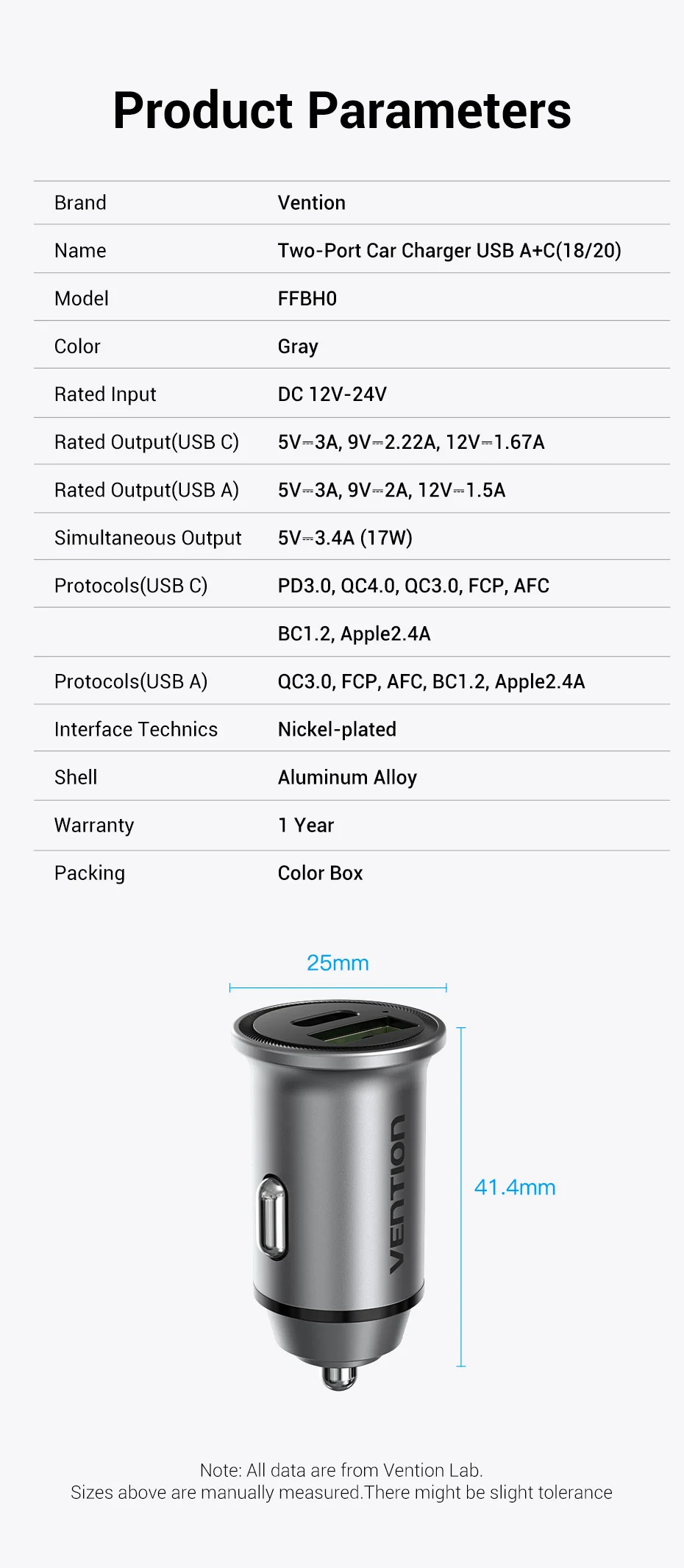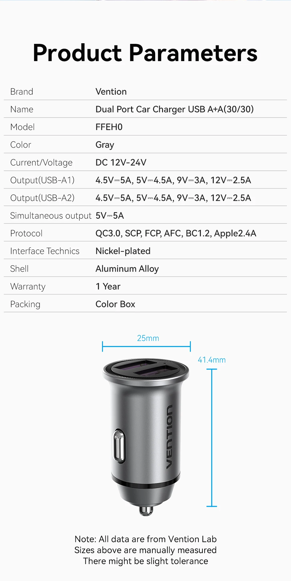 Comprar Vention Vention Cargador de coche USB de carga rápida para iPhone Xiaomi Huawei Samsung teléfono carga rápida SCP QC4.0 QC3.0