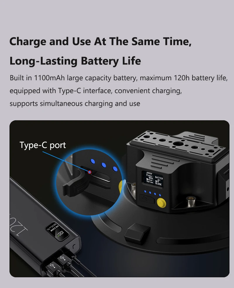 * Batería de larga duración: batería incorporada de gran capacidad de 1100 mAh, duración máxima de la batería de 120 horas, equipada con interfaz tipo C, carga conveniente, admite carga durante el uso, ya no se preocupe por quedarse sin energía.