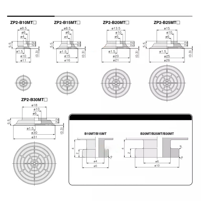 10 Uds brazo mecánico ventosa de vacío boquilla de silicona/NBR ventosa fina de goma de una sola capa ZP2-TB15/20MT piezas de inyección de Robot