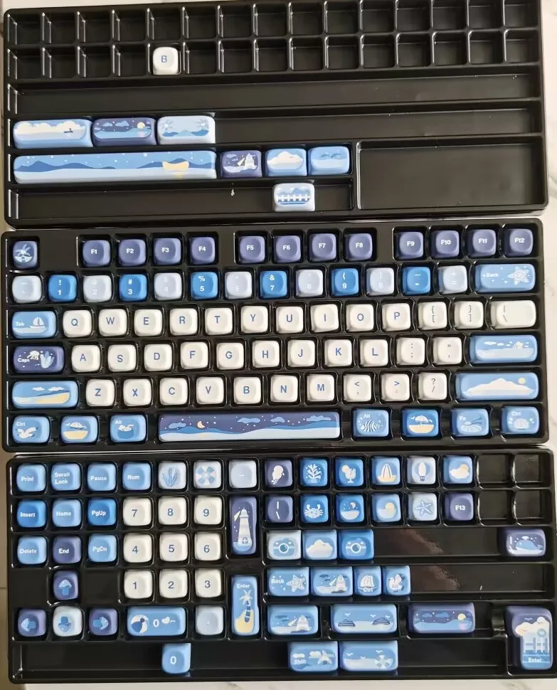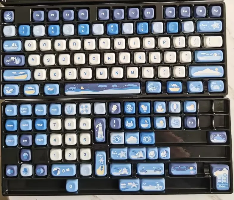 Comprar Ver las teclas con tema del mar, perfil MOA, tecla de sublimación de tinte PBT para teclado mecánico MX 61/67/68/75/87/980