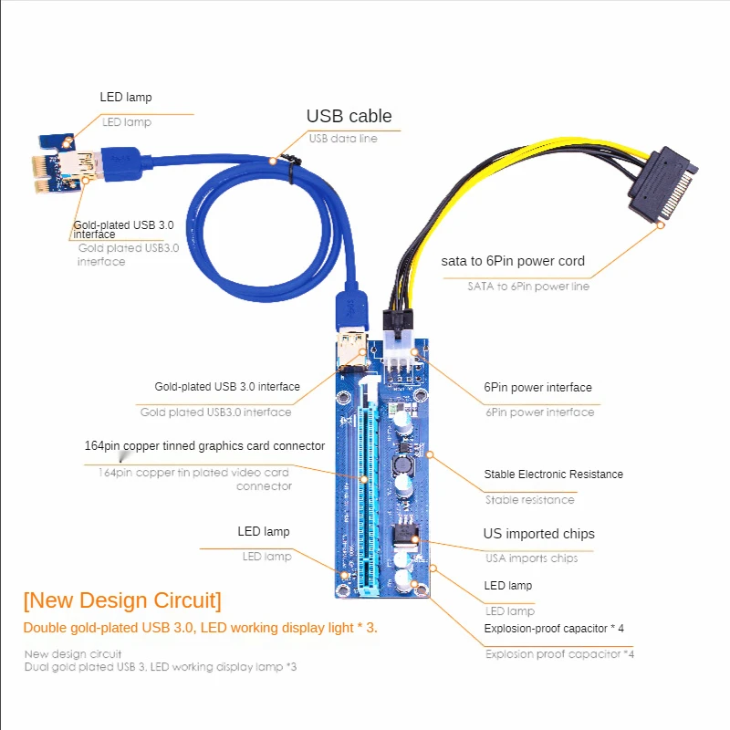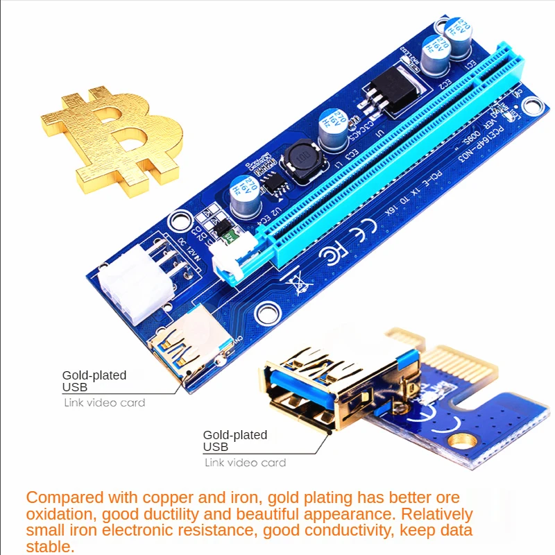 Comprar VER008C-Tarjeta elevadora USB3.0 PCI PCIE PCI-E 1X a 16X, adaptador elevador de 60CM 008C con LED para minería GPU