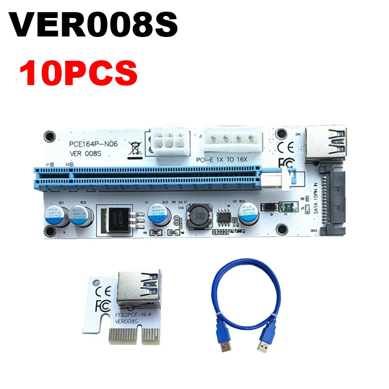 10/1 piezas VER008S PCI-E tarjeta elevadora 008S PCI Express 1X a 16X 4Pin 6Pin SATA Power LED USB 3,0 Cable de extensión para tarjeta gráfica