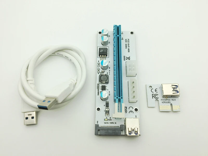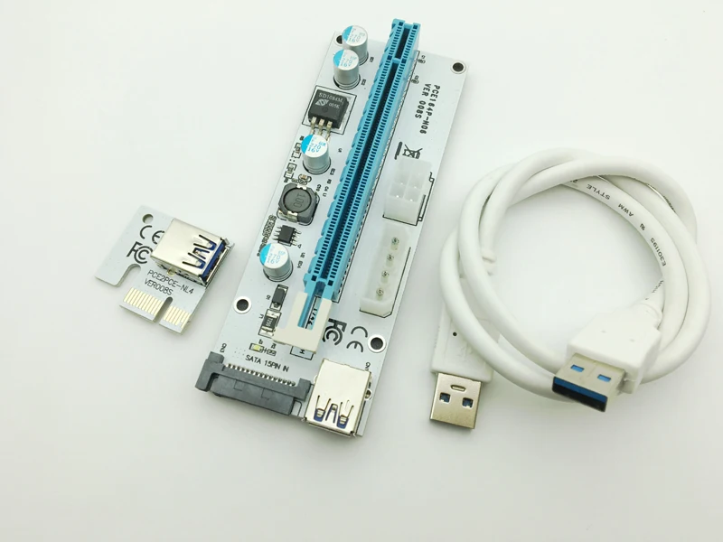 VER008S-Tarjeta elevadora 3 en 1 Molex, 4 pines, SATA, 6 pines, PCIE, PCI-E, PCI Express, 1x a 16x, Cable USB 3,0 para minería BTC