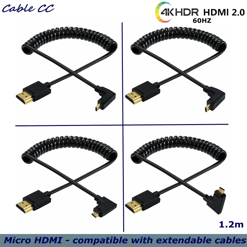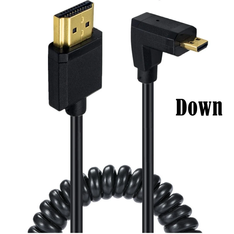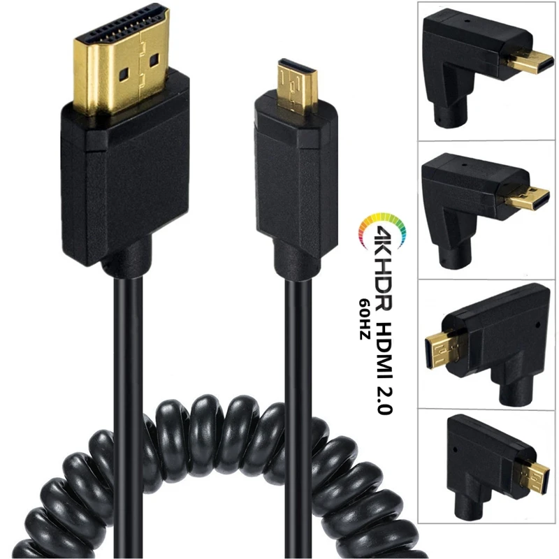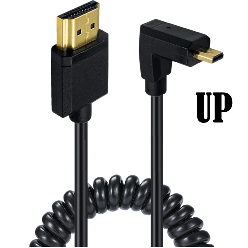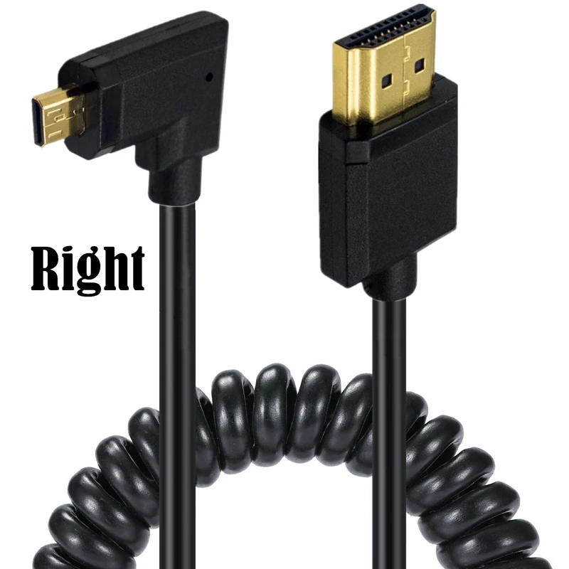 Cable de extensión de resorte 90° cable micro hdmi codo versión 2.0 4K computadora portátil de alta definición, tableta TV, proyector de cámara OD3.2mm cable de datos de alta definición 1,2 M/1,8 M/2,5 m;