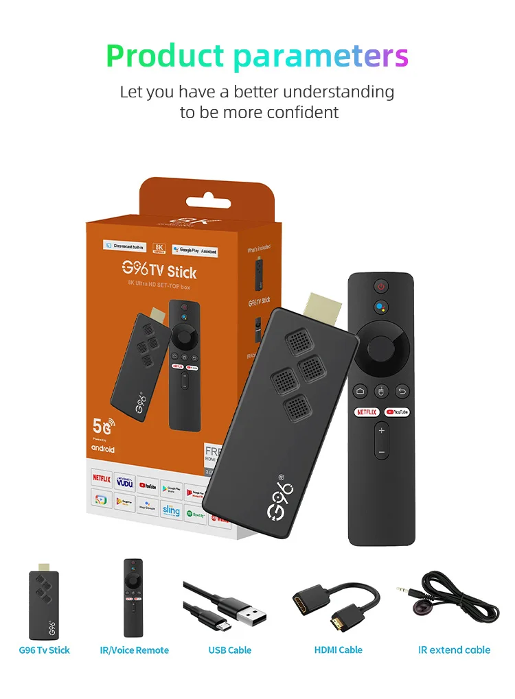 G96 TV STICK 8K Ultra HD con reproductor multimedia de transmisión con control remoto por voz